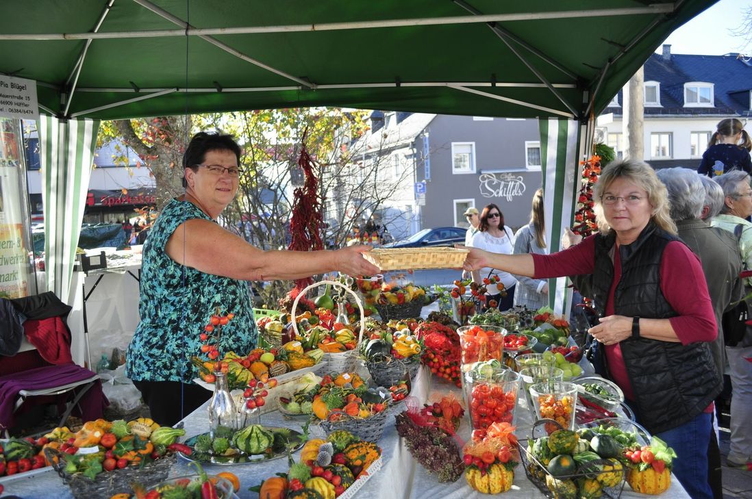 Frisches Obst und Gemüse aus der Region an den Ständen der Selbstvermarkter, Gartengeräte, Informationsstände und in den Geschäften aktuelle Herbst- und Winterwaren waren im Angebot. Kulinarische Köstlichkeiten an den Ständen und in der Gastronomie rundeten einen herrlichen Spätsommertag und Markttag ab. Neben den Ausstellern lockten auch die geöffneten Geschäfte in die Fußgängerzone. Bei sommerlichen Temperaturen und Sonnenschein waren zur besten Kaffeezeit kaum noch Parkplätze zu finden. Der Bauern- und Handwerkermarkt ist bereits seit Jahren ein Besuchermagnet für Hermeskeil. An mehr als 110 Ständen gab es unter anderem Liköre aus eigener Herstellung, selbst gebastelte Herbstdekoration, Socken, Honig, Obst und Gemüse und selbst gebackenes Brot. Auch Käse wurde selbst gemacht vor Ort angeboten. FA
