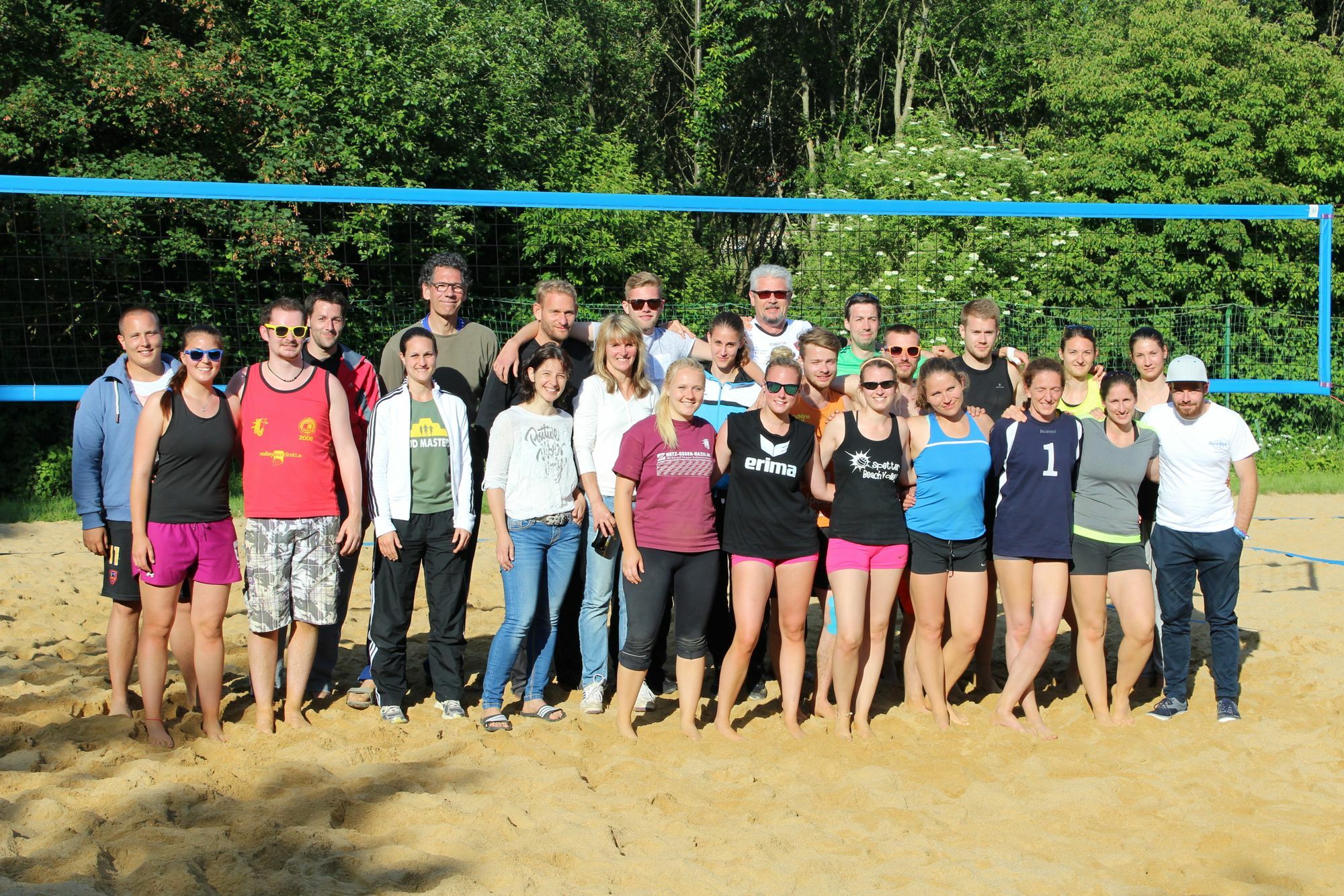 Beachvolleyball geht einher mit Sand, Meer/Wasser und Sonne – Wasser hatten wir von oben in der letzten Zeit genug, so dass die Wiesenflächen mehr einer Nasswiese glichen als dass man an Urlaubsfeeling denken konnte. Einen vollständigen Tag Sonne ohne Regen – so was muss es schon mal gegeben haben.