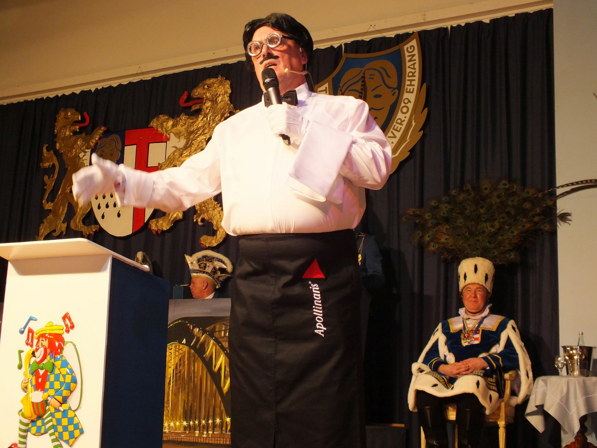 Solomariechen Lana Pauly, die zum ersten Mal auf der Bühne stand, erntete besonderen Applaus. Rudi Labarbe als "Garcon aus dem blauen Salon" machte sich über einige Gäste in der Gastätte Blauer Salon lustig. Ein Gast musste schnell weg und fragte nach einer Empfehlung. " Nehmen Sie die Frikadellen, die müssen auch schnell weg". Wer wiederum mehr über das neue Dreigestirn erfahren wollte, konnte sich vertrauensvoll an "Tünnes und Schäl" wenden. Sie erklärten das Dreigestinrn als die neuen Dezernenten vom OB. Der Dezernent für kaltes Bier, der Dezernent für warmen und guten Kaffee, und die Dezernentin für wandelnde, tanzende, grazile Damen unterstützen laut Tünnes und Schäl den OB. Bei Problemen mit der Baustelle an der Helenenstraße war im Publikum auch der Orstvorsteher als Baustellentröster vertreten. Die Kindergarde als Schmetterlinge, Bienen und Feen ließen das trübe Wetter vergessen. Auch die älteren Semester mussten dann beweisen dass sie noch genauso gut tanzen können. Die Gruppe "Forever Young" wirkte mit ihrem Bewegungsdrang ansteckend. Weitere Sitzung: Samstag, 23. Januar, 6. Februar ab 19.11 Uhr. mg/Fotos: Greve
