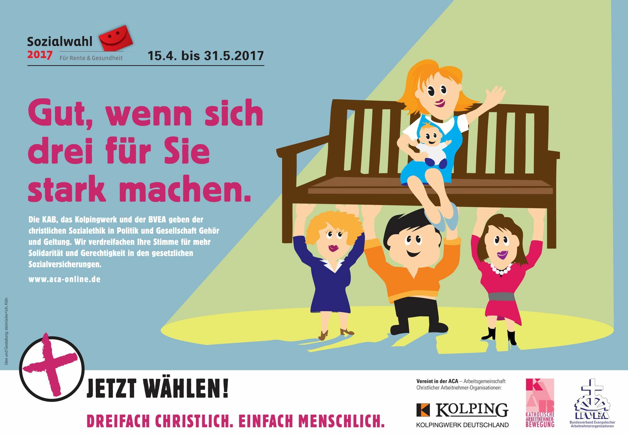 Der Vorsitzende des Rates der Evangelischen Kirche in Deutschland (EKD), Landesbischof Dr. Heinrich Bedford-Strohm, und der Vorsitzende der Deutschen Bischofskonferenz, Kardinal Reinhard Marx, erklären zur anstehenden Sozialwahl 2017: "Zu der Wahl kandidieren die drei christlichen Sozialverbände – das Kolpingwerk Deutschland, die Katholische Arbeitnehmer-Bewegung (KAB) und der Bundesverband Evangelischer Arbeitnehmerorganisationen (BVEA) – auf einer gemeinsamen Liste. Die Kandidaten aus den drei christlichen Sozialverbänden verfolgen das Anliegen, christliche Werte in die Entscheidungen der Sozialversicherungsträger einzubringen. Sie treten ein für die Solidarität der Jungen mit den Alten, der Gesunden mit den Kranken und der Leistungsstärkeren mit den Leistungsschwächeren. Als Christen haben wir Entscheidendes beizutragen, wenn es um die Mitgestaltung der sozialen Sicherungssysteme geht: die Orientierung am Wohl und der Würde des Einzelnen – ohne Ansehen der Person, die Sorge um gerechte Strukturen und die Stärkung der sozialen Selbstverwaltung als Ausdruck gesellschaftlicher Verantwortung." Die beiden Verteter rufen deshalb zur Beteiligung an der Sozialwahl auf: "Unterstützen Sie die Selbstverwaltung der Sozialversicherungen durch Vertreter aus christlichen Organisationen. Tragen Sie mit Ihrer Wahl zur Solidarität der Versicherten untereinander bei."