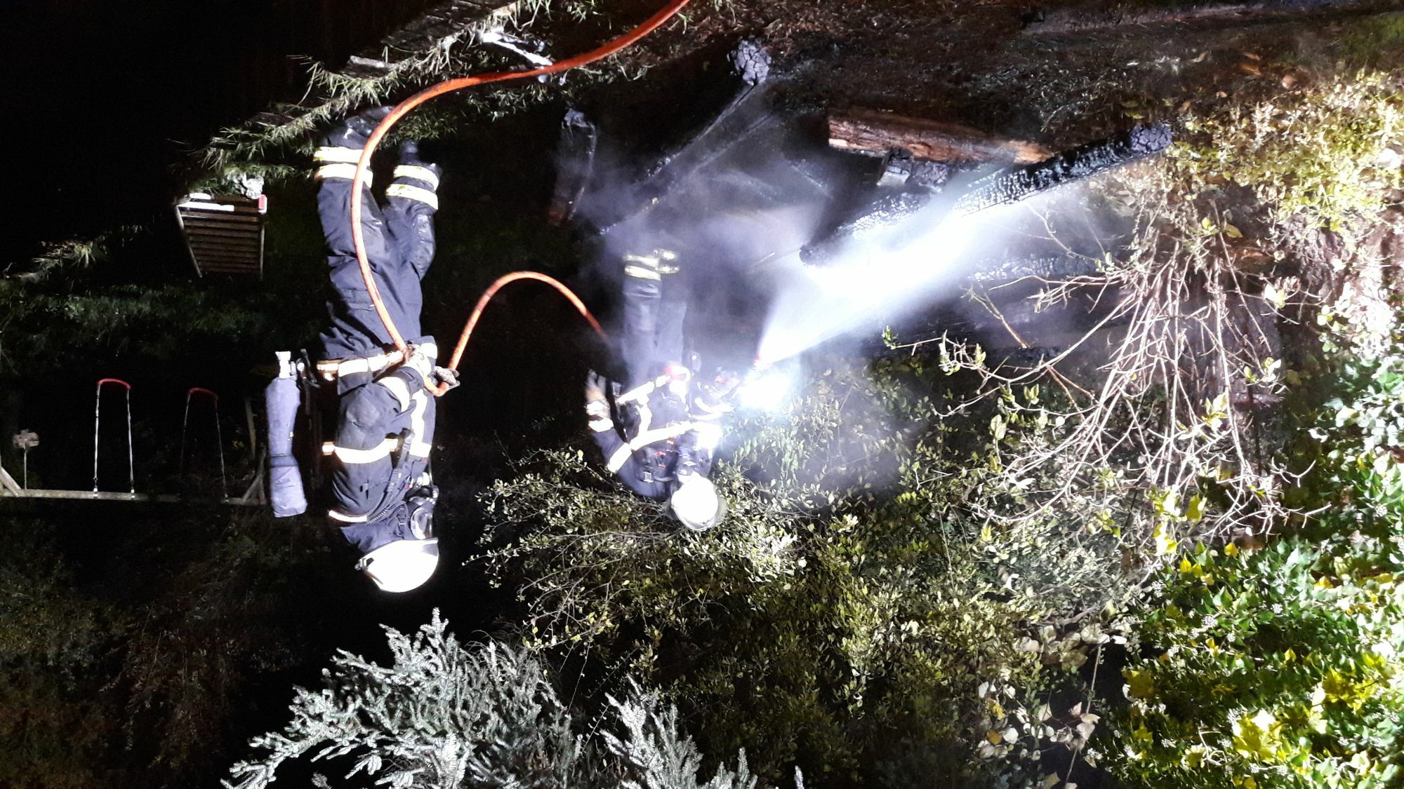 Anwohner haben am 8. November gegen 21.35 Uhr Flammen hinter einem Wohnhaus in der Straße "Zum Pfahlweiher" bemerkt. Sie verständigten die Feuerwehr.