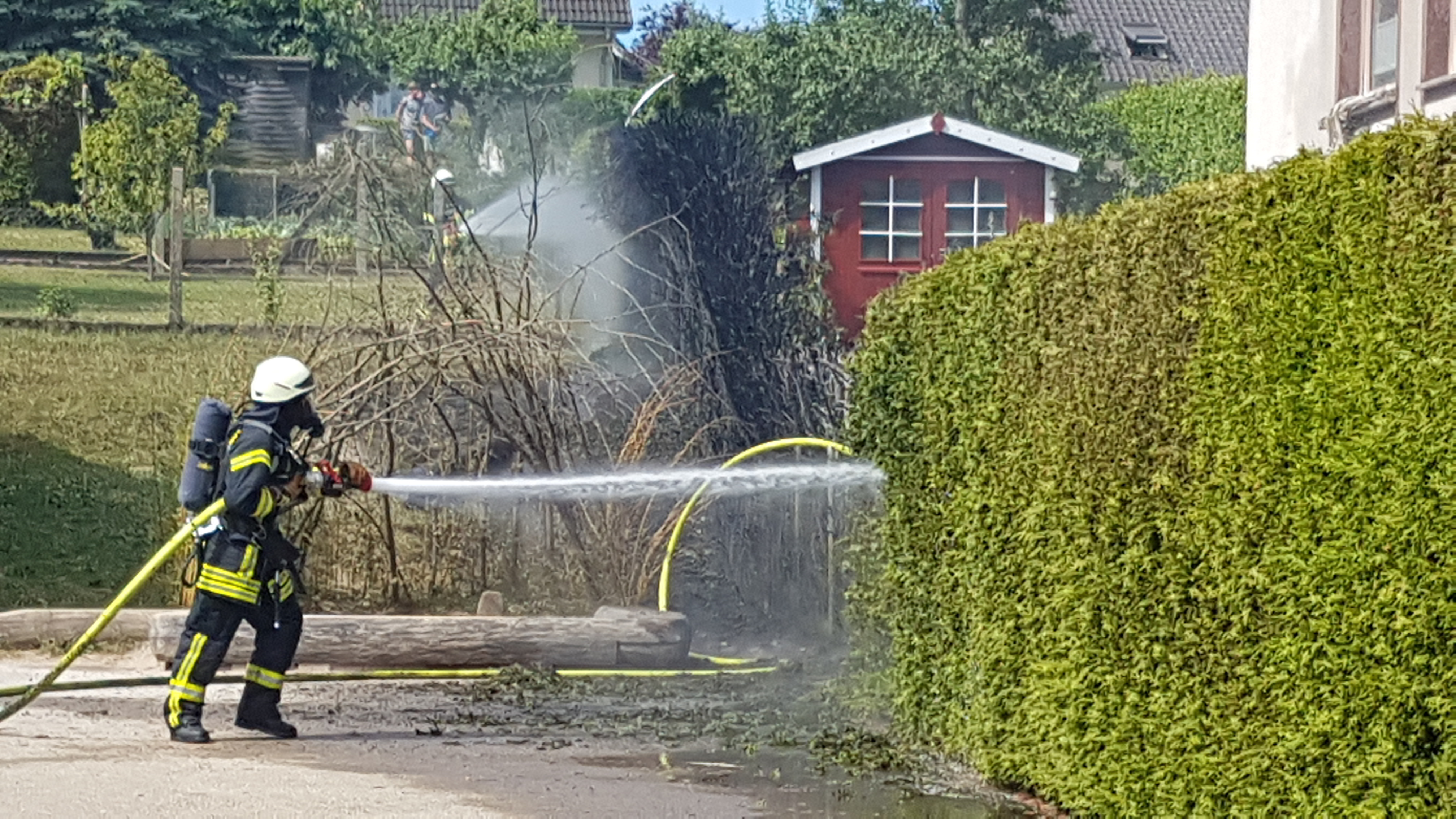 Am Freitag, 5. Juli, wurde gegen 10.50 Uhr in der Nicetiusstrasse in Trier-Irsch eine brennende Thujahecke gemeldet. Als die Feuerwehr eintraf, hatte die Hecke bereits auf ein Gebäude übergegriffen.
