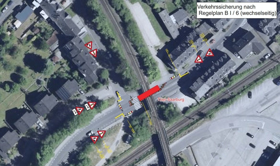 Die Grafik zeigt die Beschilderung der Absperrung. Grafik: VG Konz