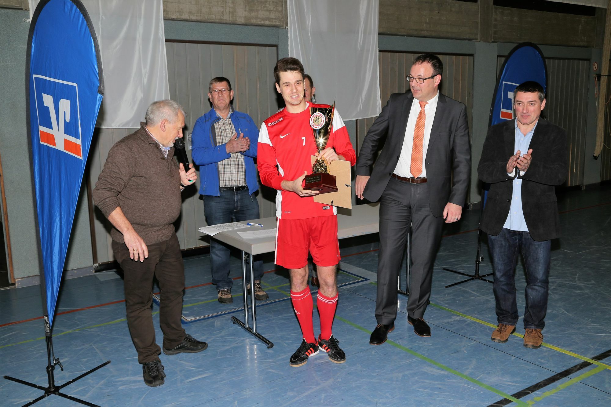 Insgesamt wurde an allen Tagen den mehr als 900 Zuschauern, allein am Finaltag waren es 400, guten Hallenfußball geboten. In der anschließenden Siegerehrung dankte der Organisator des Turniers, Günter Schmittberger, dem Sponsor, der Volksbank Trier, den Schiedsrichtern und der Turnierleitung, den Mannschaften, den Zuschauern und allen Helfern bevor Christian Hoffmann als Vertreter des Sponsors und Namengebers, von der Volksbank Trier eG, die Siegerehrung und die Preisübergabe vornahm. Neben dem Turniersieg konnte sich auch ein Spieler von TuS Mosella Schweich als bester Torschütze auszeichnen. Marc Fußangel gewann mit 13 erzielten Toren diesen Wettbewerb. Schmittberger überreichte ihm dafür die von Uhren-Haag gestiftete Uhr bevor er allen Mannschaften viel Erfolg im neuen Jahr wünschte und den offiziellen Teil des Turniers beendete.