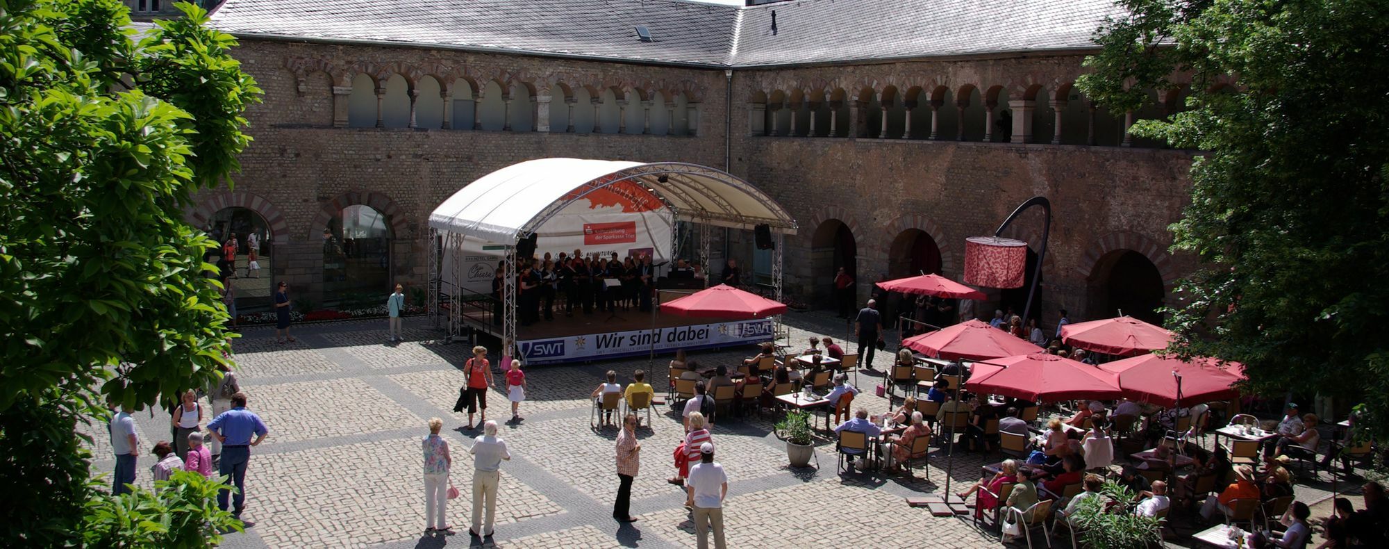 Chöre, Jazzer und Rocker bieten bis Mitte Oktober ein vielfältiges Programm im Brunnenhof, gleich neben der Porta Nigra. Die Trier Tourismus und Marketing GmbH (ttm) hat dazu mit ihren Partnern verschiedene Formate entwickelt und unter dem Label Trierer Sommer zusammengefasst. Gestartet war der Trierer Sommer bereits Ende Mai. Wegen des Festivals Porta3 und des Altstadtfests hat er kurz pausiert. Doch jetzt nimmt er Fahrt auf.