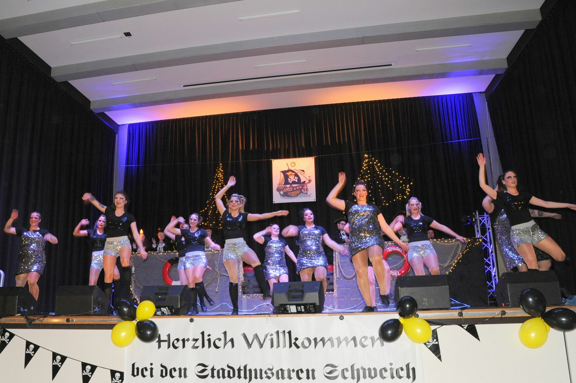 Das eigene Regiment sowie starke Garden und Tanzgruppen, die ebenso wie Büttenredner Stimmung garantieren. Bei den Schweicher Stadthusaren gehört all dazu, sodass ein volles Programm und lange Nächte vorprogrammiert sind. Am Wochenende galt das gleich für zwei Veranstaltungen: Das Ordensfest und die Galasitzung. Nach einem eindrucksvollen Einzug der Narrengilde samt Vorstand, Elferrat und Regiment gehörte die Bühne erst einmal den Jüngsten. In ihren Kostümen begeisterte die Kindergarde das Publikum. Später sicherten sich Solomariechen, Jugendgarde und – im Sinne des Mottos "Mit Captain Hook ins Narrenland" - eine Piraten-Showtanzgruppe ihren Applaus. In der "Bütt" legten Single Vanessa Wagner, Tusnelda Serap Boos, Appolonia Uschi Häring und Elmar Bock als "Örmser Jung" der Freunde der KG Grün-Weiß Urmitz/Rhein los. Mit Marie-Claire I. und Pierrot I. gab sich zudem das Trierer Stadtprinzenpaar mit den Hofmusikanten die Ehre, was super Bands wie "Et Quant Orchester" und "Fun 2.0" krönten. URS, Fotos: Schmieder