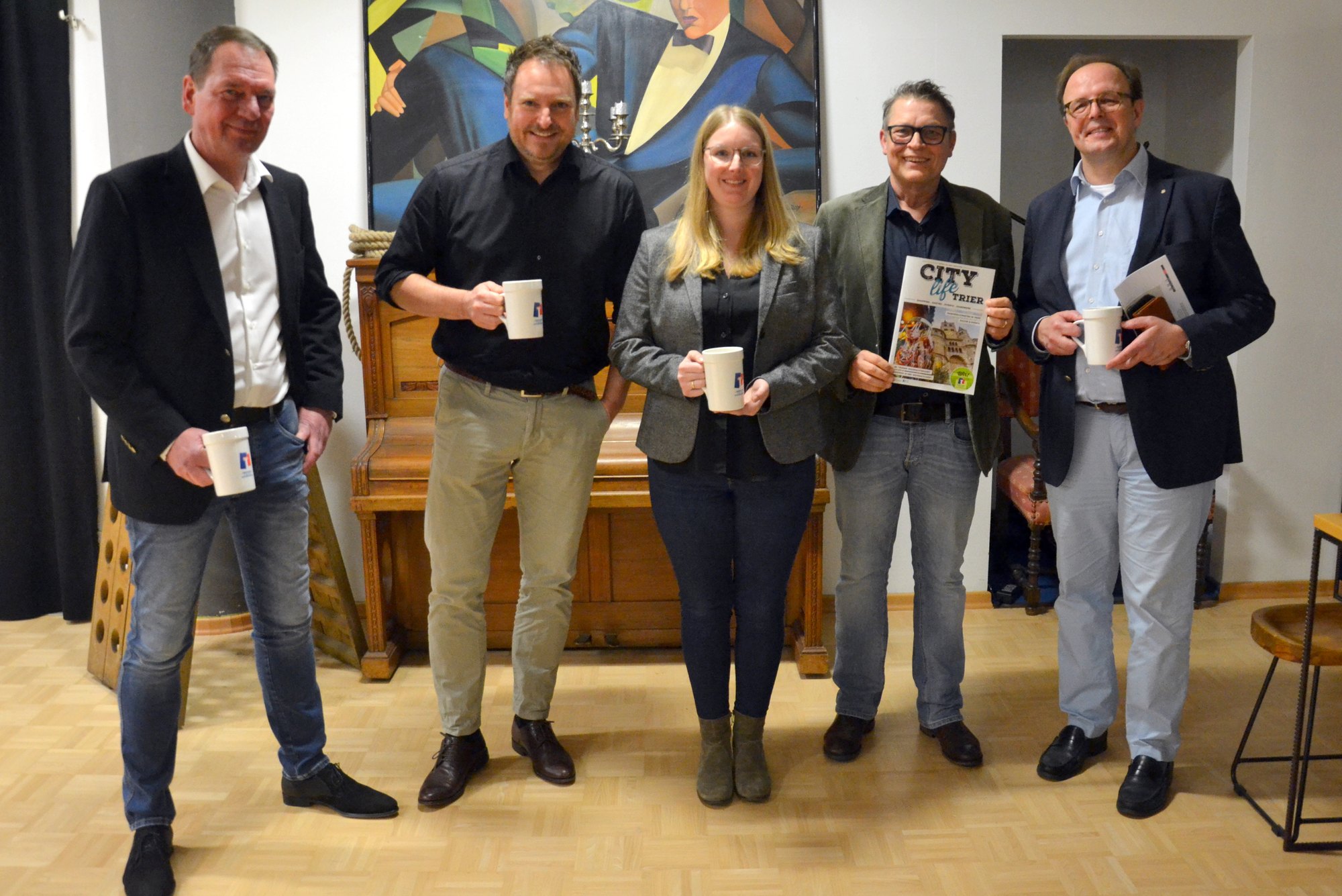 Bei der Jahreshauptversammlung der City-Initiative Trier stand die Vorstandsneuwahl für die Dauer von drei Jahren im Mittelpunkt. Der bisherige Vorstand wurde dabei offiziell wiedergewählt. Ergänzt wird das Gremium durch die neu gewählten Mitglieder Hannah Ludwig (Hannahs Kreativcafé & Conceptstore) und Yannick Jaeckert (Geschäftsführer TTM GmbH).