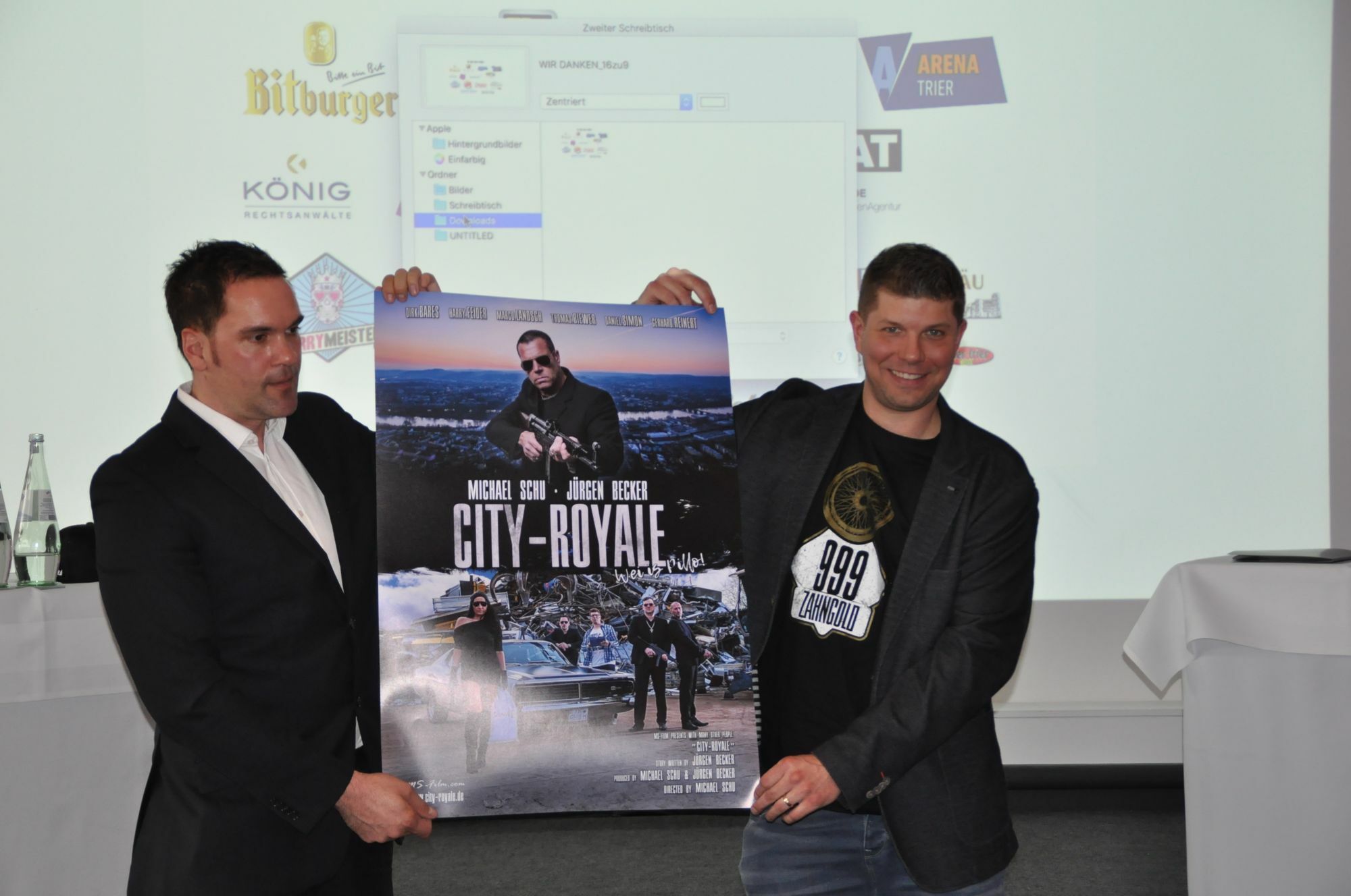 2010 war das Jahr von Michael Schu und Jürgen Becker. Ihr Film "Freck langsam" in Trierer Mundart entpuppte sich als wahrer Kassenschlager im Trierer Broadway-Kino. Mehr als 22.000 verkaufte DVDs sprechen für sich. Doch das war ihnen noch nicht genug - seit August 2014 drehen die beiden Hobby-Filmemacher wieder an einem neuen Film: "City Royale –Wei is pillo".
