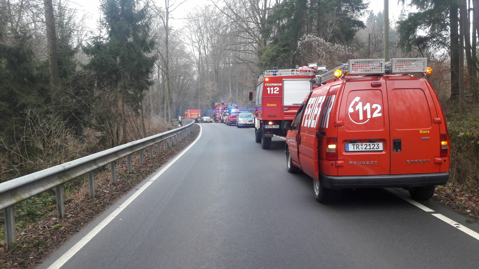 Der Jäger aus Nordrhein-Westfalen hatte in dem Wochenendhaus an der K 24 zwischen Besslich und dem Altenhof Urlaub gemacht. Der Rettungsdienst reagierte sofort, brachte den Mann nach draußen und alarmierten die Feuerwehr. Die Feuerwehr ging unter schwerem Atemschutz in das Haus und begann sofort zu lüften. Gleichzeitig wurden mehrere Werte entnommen, die weit über der Norm lagen. Grund für den erhöhten CO2-Wert war vermutlich der Ofen. Deshalb wurde auch ein Schornsteinfeger hinzugezogen. Der Jäger wurde ins Krankenhaus gebracht. Ob seine Beschwerden von den erhöhten CO2-Werten ausgelöst wurden, oder ob der Mann bereits vorher ein internistisches Leiden hatte, ist derzeit nicht klar. Der Jäger hatte trotzdem Glück: CO2-Vergiftungen können tödlich enden. Die Feuerwehr rät deshalb, Warneinrichtungen im Haus zu installieren, um Menschenleben zu Retten. Im Einsatz war die Polizeiinspektion Schweich, die Feuerwehren aus Besslich, Newel und der Gefahrstoffzug Rodt sowie der Malteser Hilfsdienst aus Welschbillig und der Notarzt aus Ehrang. Fotos: Agentur Siko u einem Gefahrstoffeinsatz kam es am Mittwochmorgen gegen 10.45 Uhr.