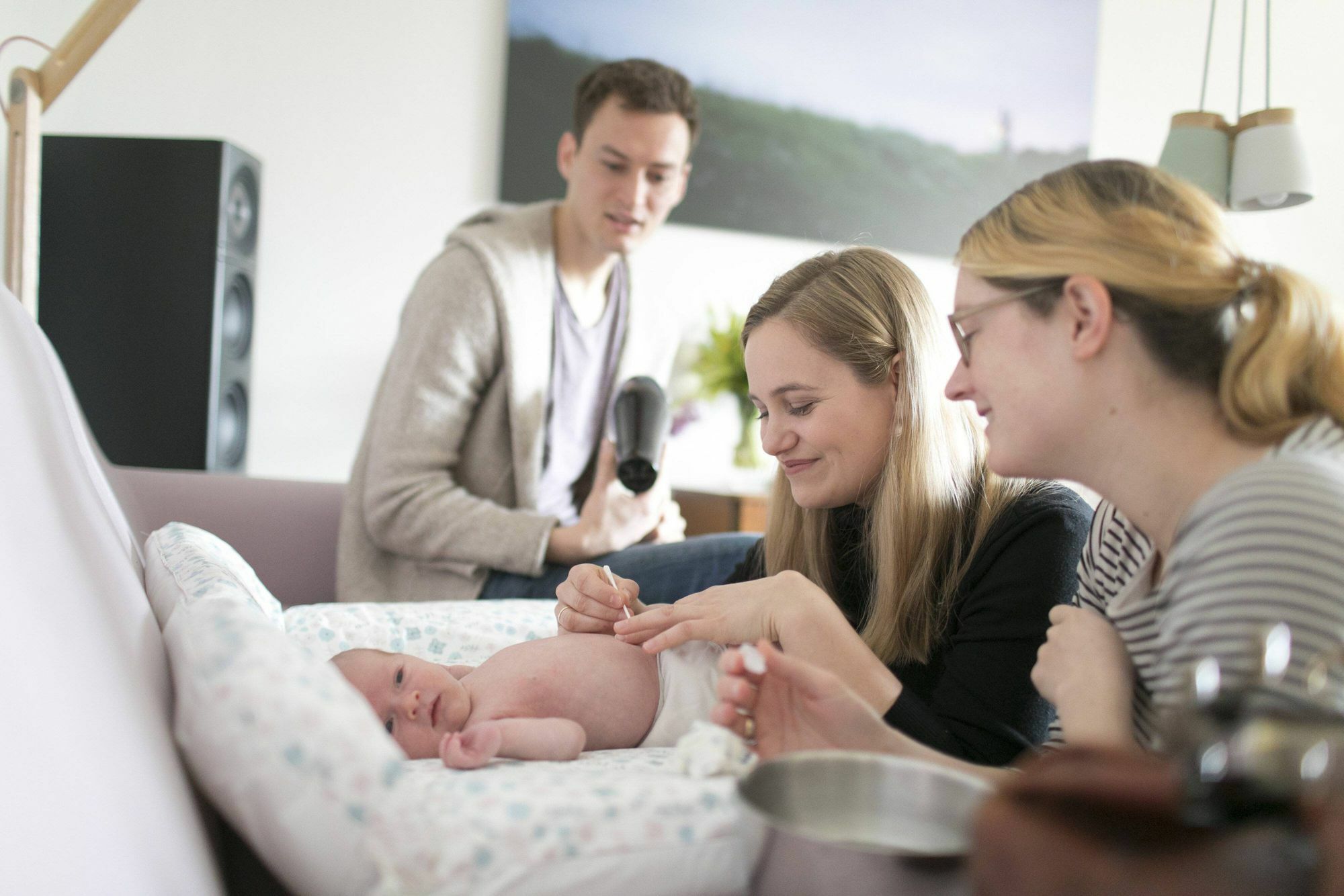 Zur Nachsorge können Hebammen momentan in der Regel nur noch möglichst kurz bei Mutter und Kind zuhause vorbeischauen. Foto: Imago / photothek