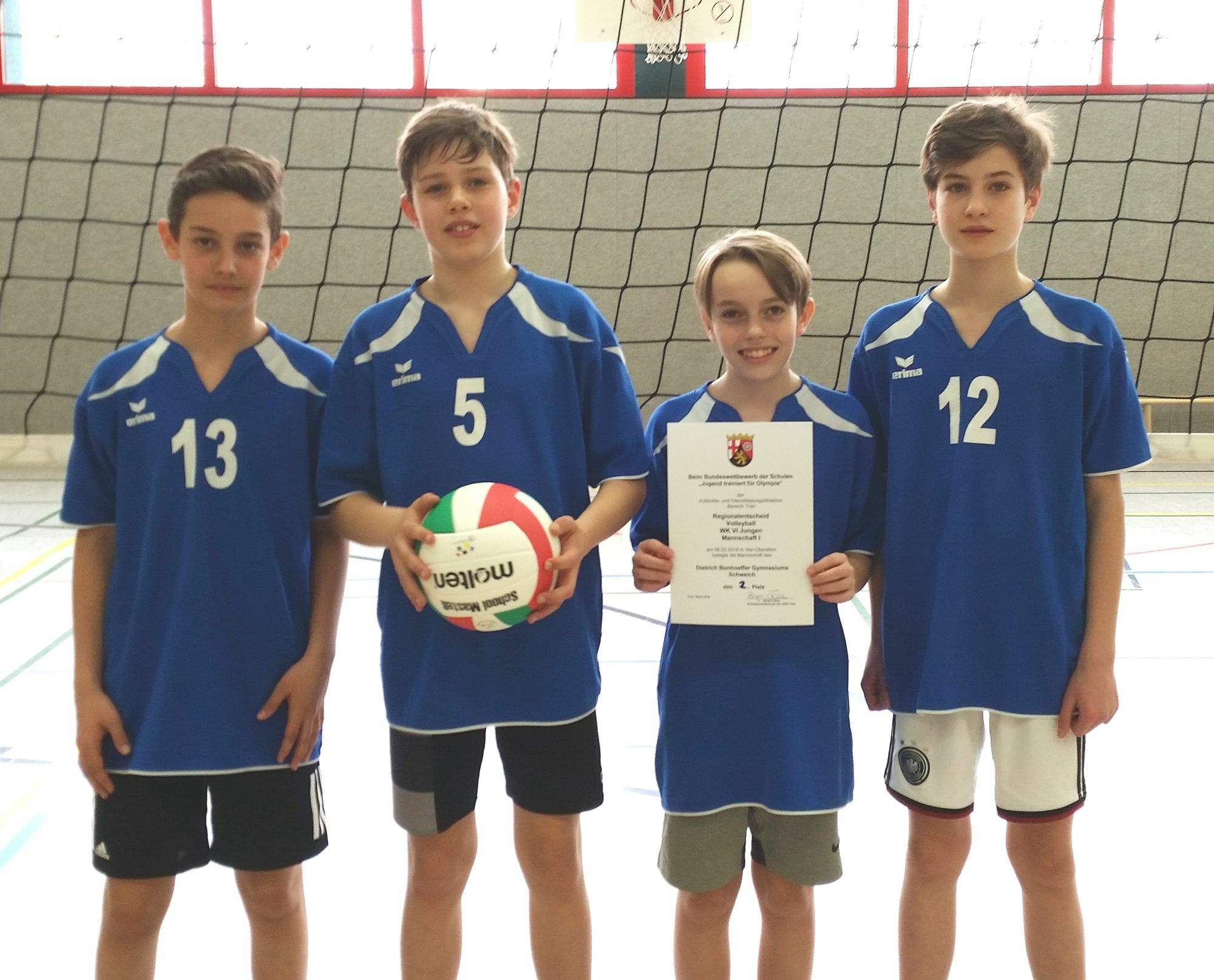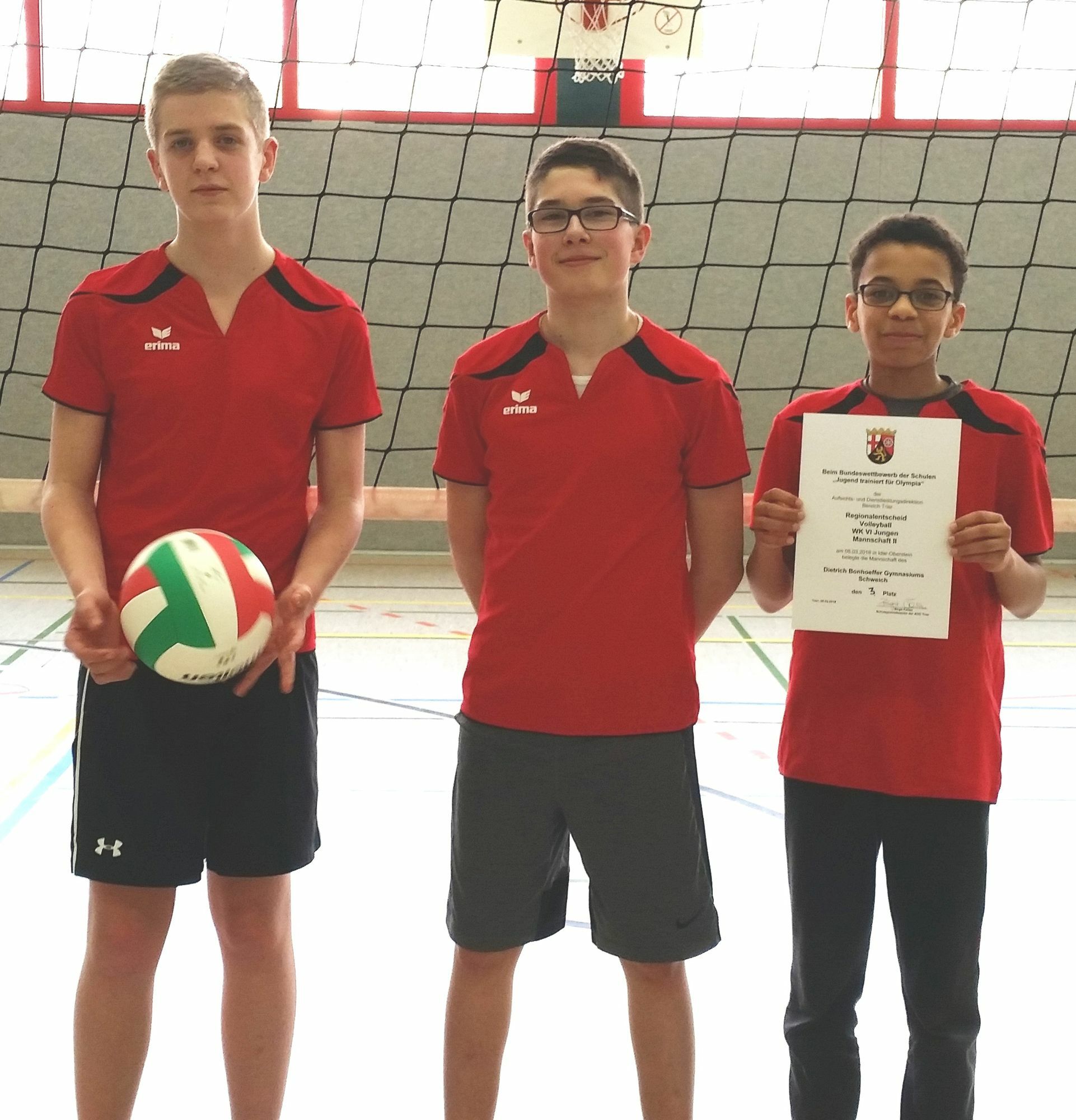 Die Jungen der Volleyball-AG am Dietrich-Bonhoeffer-Gymnasium haben beim Regionalentscheid Jugend trainiert für Olympia Volleyball in Idar-Oberstein in der jüngsten Wettkampfklasse IV einen zweiten und dritten Platz belegt.