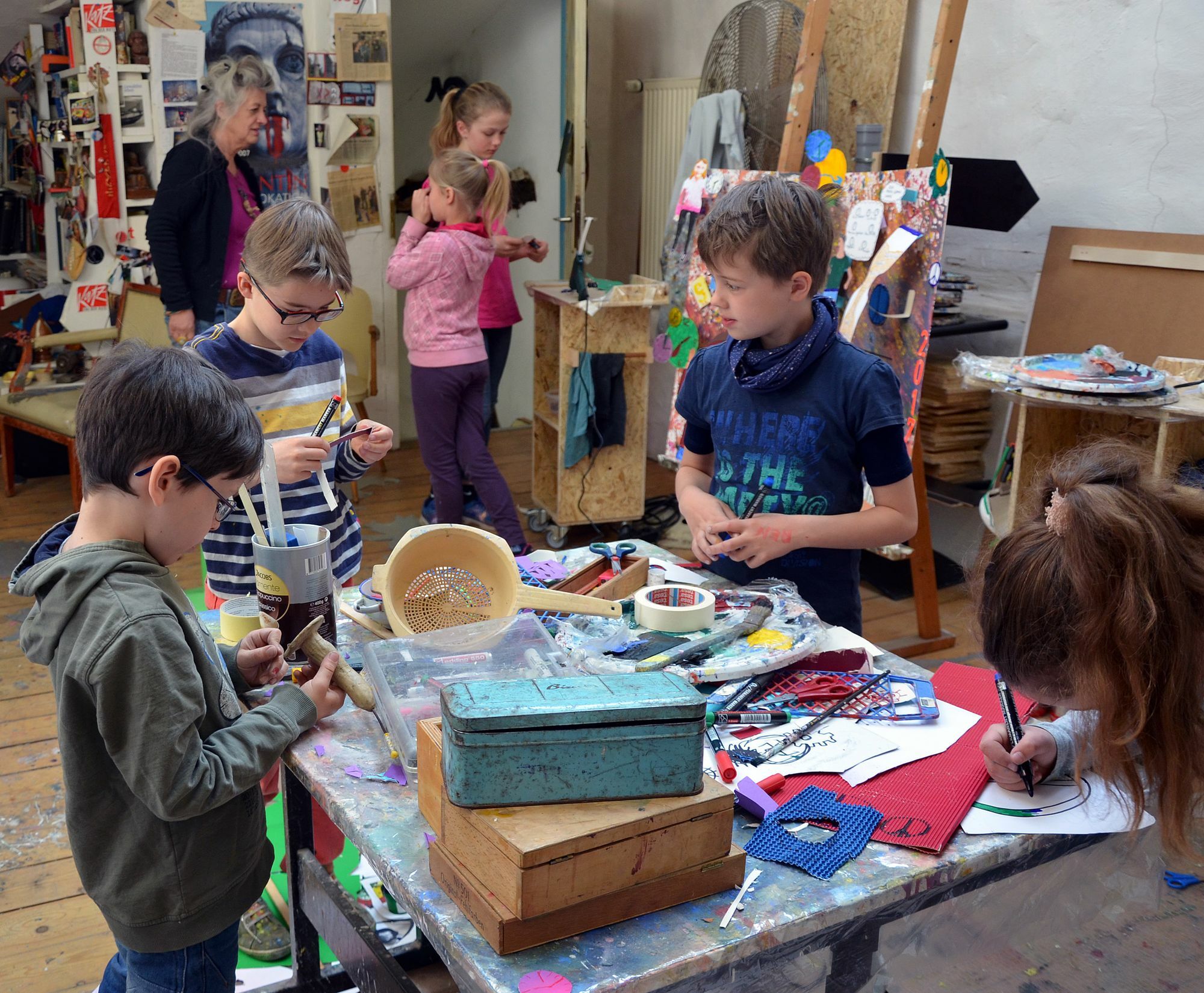 So gab es an jedem Morgen vor Arbeitsbeginn erst einmal eine "Parlamentssitzung" im Stuhlkreis. Gemeinsam mit der Projektleiterin Annamalt stimmten die kleinen Künstler demokratisch ab, wie sie den gemeinsamen Tagesablauf gestalten möchten. Annamalt gab dazu hilfreiche Profitipps, Sicherheitshinweise und Anregungen.  Doch die Fantasie der Kinder ist unantastbar. "Während des Rundgangs durchs Haus stellten die Kinder viele neugierige Fragen zu den hier befindlichen Werken", sagt Annamalt begeistert, "ein regelrechtes Ideenfeuerwerk wurde bei den Kids entfacht."