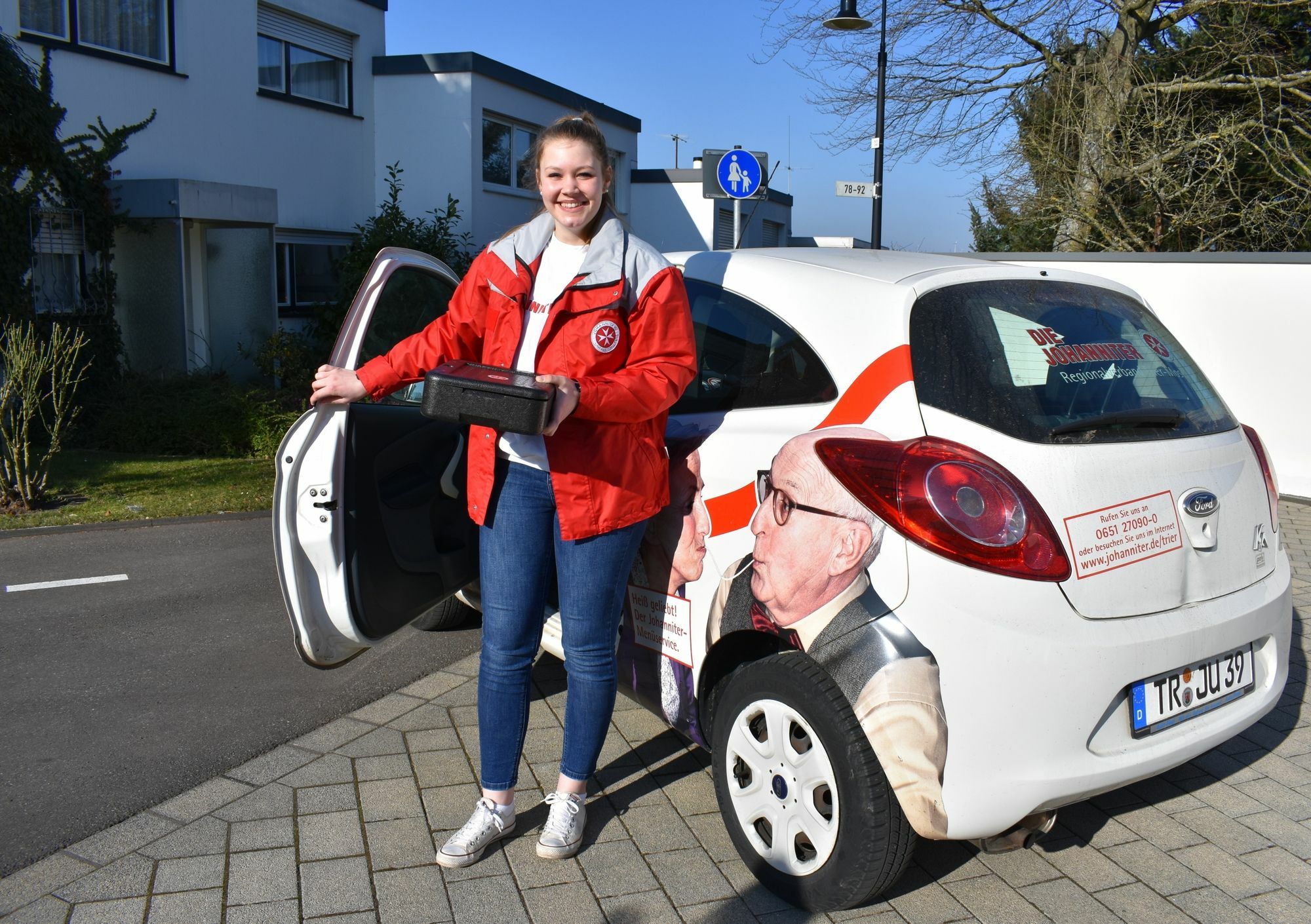 Felicia Feider liefert heute das auf die individuellen Bedürfnisse abgestimmte Mittagsmenü der Johanniter in Trier und Umgebung aus. Als das Essen auf Rädern-Angebot vor zehn Jahren startete, war die junge Frau gerade neun Jahre alt. Foto: Johanniter RV Trier-Mosel/ Regina Lüders