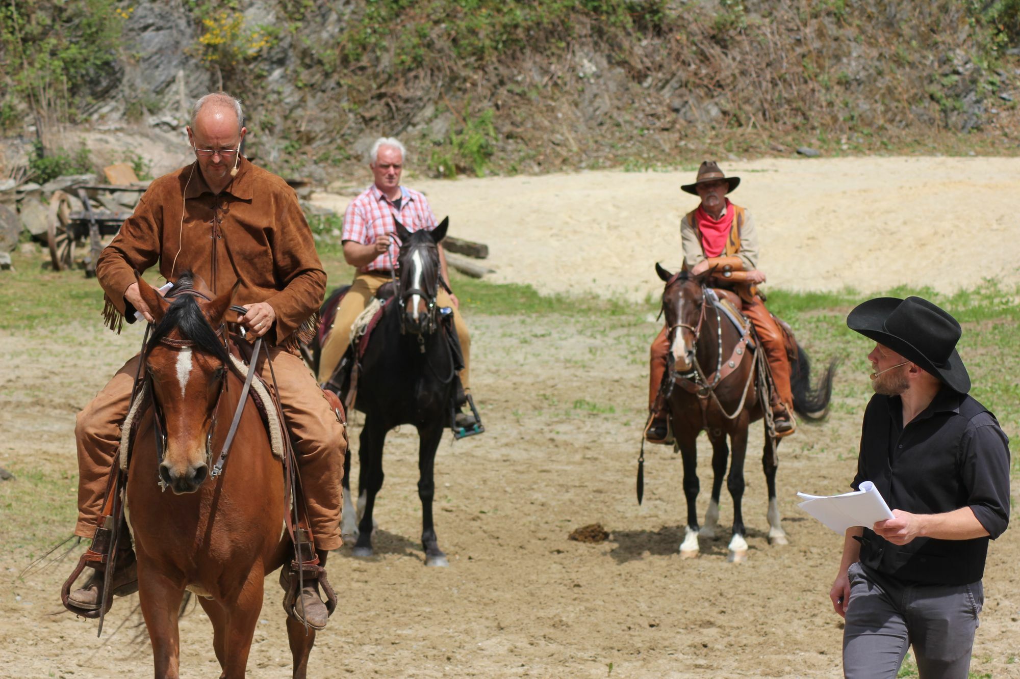 Als Winnetou, edler Häuptling der Apachen, reitet Reinhold Schomer in das Geschehen, Rainer Otten als Old Shatterhand. Insgesamt 28 Pferde sorgen für noch mehr Wildwest-Atmosphäre. »Heute werden wir die Pferde einschießen«, verkündet Faißt. Heißt: Die Tiere werden an das Knallen von Platzpatronen gewöhnt.