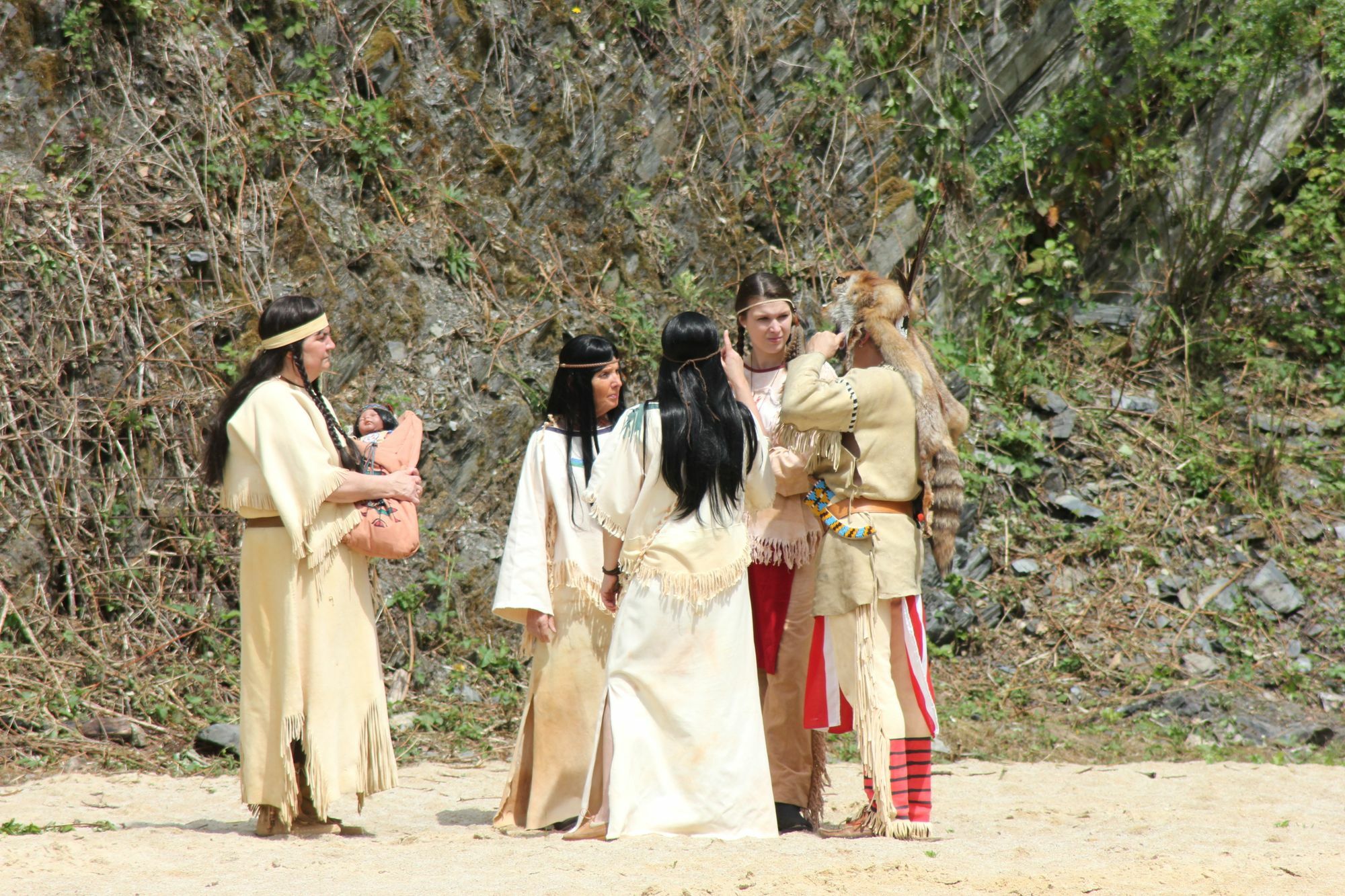 Zeit, einen Angriff des Indianerstamms auf die Stadt zu proben. »Der Überraschungseffekt fehlt, weil es zu lange dauert«, mosert Regisseur Conny Faißt nach dem ersten Durchlauf. Der Angriff mit seinen Kampfszenen wird wiederholt – zweimal, dreimal. Die Laienschauspieler steigern sich von Mal zu Mal, der Überraschungseffekt ist da, der Regisseur zufrieden. Es geht weiter, Szene um Szene.