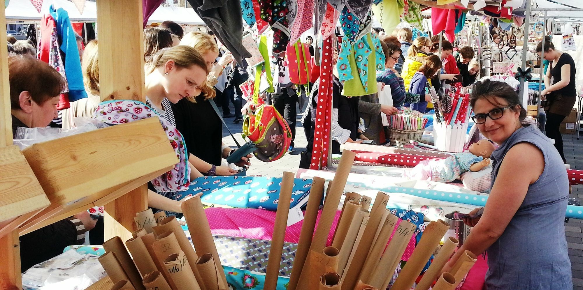 Am Ende des Sommer denken bereits viele an Herbst und Winter, mit all seine Farben und warmen Stoffen. Der Deutsch-Holländische Stoffmarkt bietet hierfür die richtige Inspiration. Aus allen Bundesländern kommen deutsche Stoffanbieter angereist, einige Händler haben mehr als 10 Kilometer Stoff im Gepäck. Einer der größten holländischen Anbieter bringt alleine 15.000 Meter Stoff aus seiner Kollektion mit. Ein anderer großer Kurzwarenhändler bietet neben tausenden von Knöpfen, hunderten Garnrollen und Kilometern von Borten und Bordüren auch noch die Auswahl unter mehr als 25.000 Reißverschlüssen. Geboten wird eine riesige Vielfalt an Kleider-, Gardinen-, Möbel- und Dekostoffen sowie viele weitere Spezialstoffe zum Basteln oder für Patchwork sowie Kurzwaren und Schnittmuster.