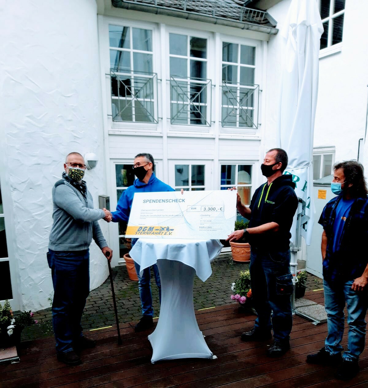 So konnte unter strengen Auflagen am Sonntag, 11. Oktober, eine Scheckübergabe über die stolze Summe von 3.300 Euro an die DGM stattfinden. Von der DGM Sternfahrt war Markus Betz als Vorsitzender und ein Teil seines Teams anwesend. Die DGM war durch den Vorsitzenden des Landesverbands Manfred Greis, den Schatzmeister Michael Bader und die Schriftführerin Regina Michels vertreten. Auch der Bürgermeister von Oberbillig Andreas Beiling bedankte sich bei Markus Betz für die schon seit 2004 stattfindende Veranstaltung. Sie sei auch ein Gewinn für die Gemeinde, die dadurch weit über die Grenzen des Landes hinaus bekannt wurde. Er habe schon alle Sternfahrten als Bürgermeister begleitet und ist stolz das solch eine Veranstaltung im Ort gemacht werde.