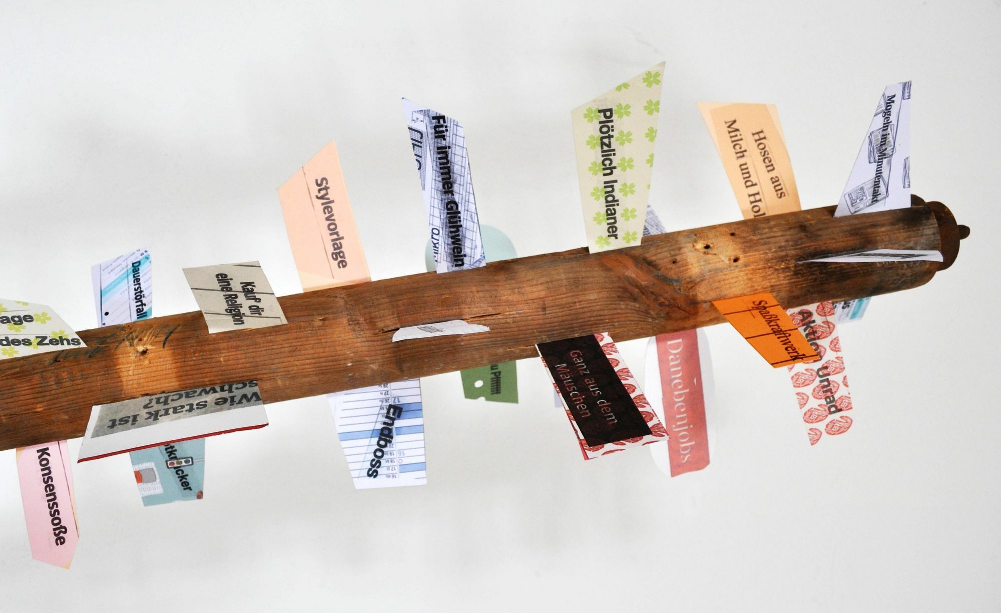 Allgegenwärtige Materialien wie Broschüren und Zeitungen, Verpackungen und Entsorgtes, ihre Gebrauchswerte und verborgenen Potentiale bestimmen Sylvia Richter-Kundels Arbeiten. Die Herauslösung aus gegebenen Funktionszusammenhängen und anschließend ungewohnte neue Verknüpfungen untereinander lassen Objekte entstehen, deren Skurrilität und Doppelbödigkeit gesellschaftliche Gegenwart jenseits bekannter Sichtweisen in ganz eigenes Licht tauchen. In den Arbeiten verschmelzen reale Gegebenheiten, Vorstellung und Möglichkeiten zu einem humorvollen Kaleidoskop.