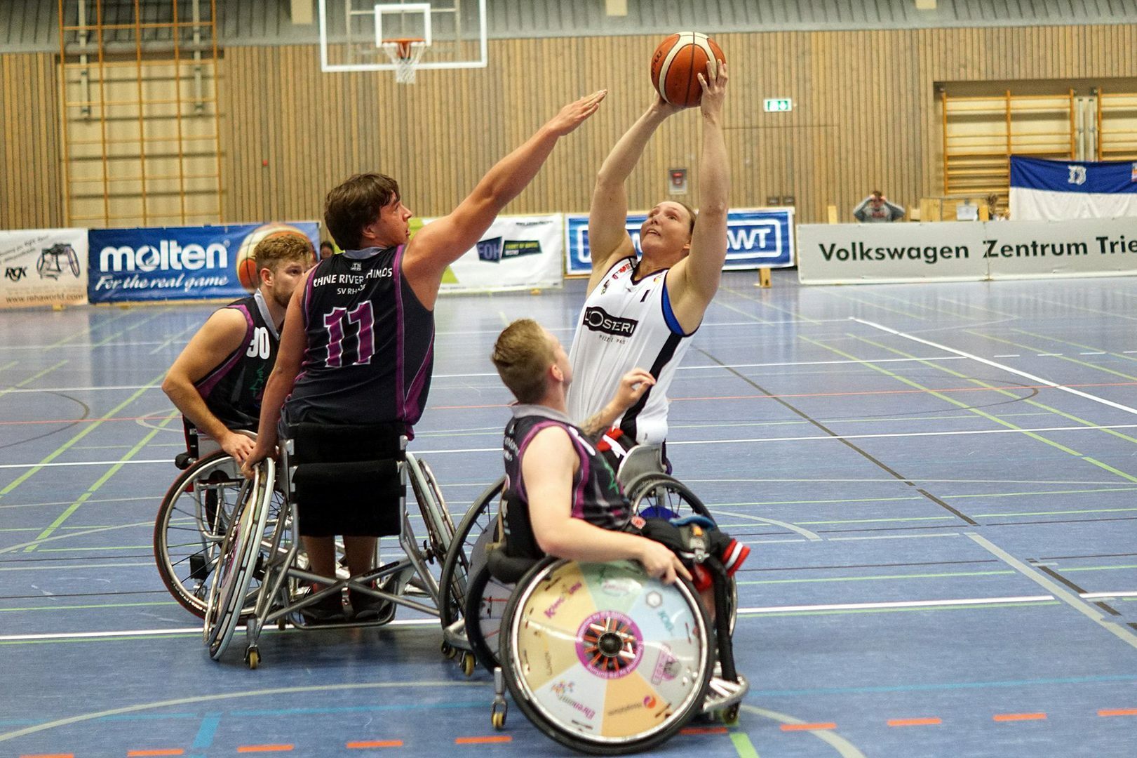 Spielertrainer Dirk Passiwan hat einige Akteure der Rhinos am vergangenem Wochenende bei dem Selection Camp der Deutschen Rollstuhlbasketball Nationalmannschaft der Männer getroffen und zusammen mit ihnen den ersten Schritt in Richtung Europameisterschaft Anfang September gemacht. "Ich habe gesehen, dass die Jungs fahrerisch wirklich was drauf haben und wir die Rhinos auf keinen Fall unterschätzen dürfen. Mit Günthner und Hopp haben sie zwei starke 4,5 Spieler, die wissen, was sie machen und wie sie ihre Schüsse bekommen. Die Lowpointer Schorp und Mayer sind sehr fokussiert für ihre Mitspieler zu fahren und arbeiten hart daran mit, die Werfer in Position zu bringen. Diese Fahrwege müssen wir unbedingt stoppen, um nicht einfache Körbe zu bekommen und die Rhinos somit ins Spiel kommen zu lassen. Auch die mittelpunktigen Spieler Amacher, Masly und Mohnen wissen, wie sie den Ball dahin bringen, wo sie uns gefährlich werden können. Daher ist es mir sehr wichtig, den Gegner nicht zu unterschätzen, und das gebe ich auch in jedem Training so an mein Team weiter. Zwar stehen die Rhinos eher am Schluss der Tabelle, doch nach den Leistungen am Wochenende bin ich mir sicher, dass da sehr viel Potential schlummert und ich möchte nicht, dass sie dieses gegen uns abrufen können."