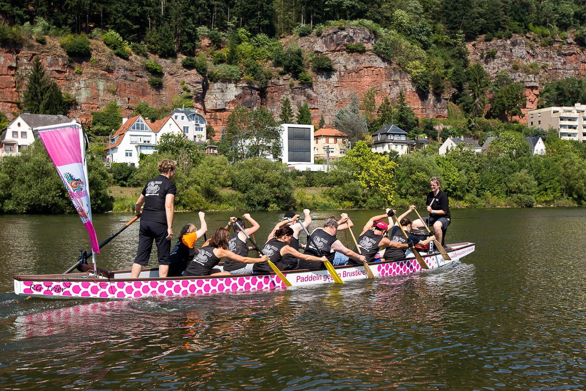 Die Paddler sitzen paarweise auf Bänken nebeneinander und bewegen die markant gestylten Boote mit Stechpaddeln entweder auf der rechten oder linken Seite vorwärts. Ein Trommler nimmt den Rhythmus des vordersten Paddlerpaares auf. Alle anderen im Boot paddeln synchron mit ihnen auf den Schlag, den die Trommel von den Schlagleuten aufgreift. Bei Regatten motiviert der Trommler die Paddler durch Zurufen, ihr Bestes zu geben. Für jede Menge Spektakel ist am 28. August am Moselufer gesorgt… Weitere Infos und Anmeldung im Netz unter www.drachenboot-trier.de AA