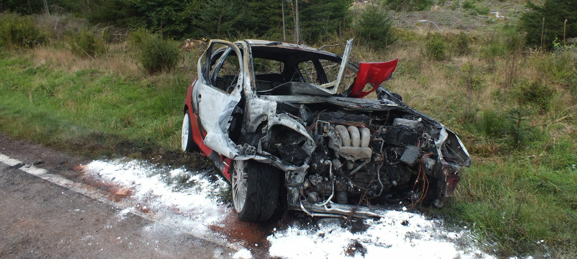 Ein 19-Jähriger geriet in einer Kurve in den Gegenverkehr und kollidierte frontal mit einem Auto, dass aus Richtung Waldweiler kam. Dabei ging das Fahrzeug des Unfallverursachers in Folge des Aufpralls in Flammen auf. Der Mann konnte sich jedoch trotz seiner schweren Verletzungen selbst aus dem Auto befreien.