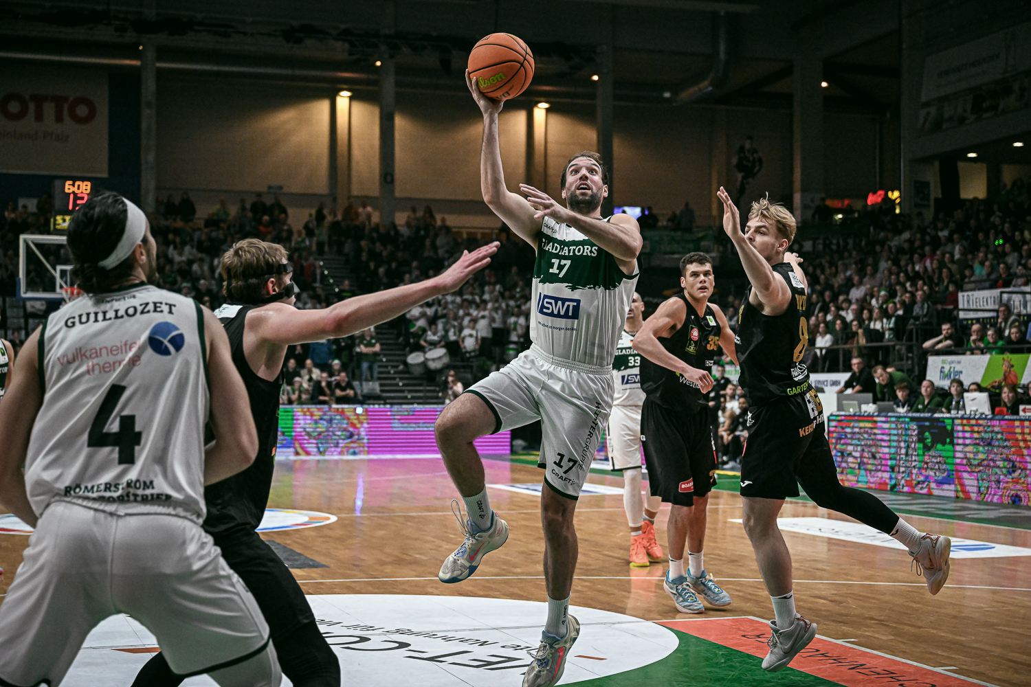 Statistisch zeigt sich die Ausgeglichenheit im Paderborner Kader, denn gleich sechs Akteure erzielen zweistellige Punktewerte im Durchschnitt. Angeführt wird das Team von Point Guard Quashawn Lane mit 12,4 Punkten im Schnitt. Shooting Guard Hutton Yenor (12,2), Forward Lars Lagerpusch (11,6) und die Combo Guards Zach Chappell (10,9), Lucas Mayer (10,6) und Jacob Biss (10) sorgen für die meiste Unterstützung in der Offensive. Anhand dieser Werte wird bereits deutlich, dass Steven Esterkamp auch dieses Jahr über eine individuell hervorragende Guard-Riege verfügt, die die Gladiatoren bereits im knappen Hinspielsieg (87:85) der Trierer vor Probleme stellte. Im Teamvergleich erkennt man die größten Differenzen in den erzielten Punkten pro Spiel. Während die Moselstädter mit 88,5 Zählern pro Partie den zweiten Platz im Ligaranking einnehmen, stehen die Paderborner mit 77,2 Punkten pro Spiel auf dem vorletzten Platz der ProA. Bei der Dreierquote belegen die Ostwestfalen sogar den letzten Platz und treffen lediglich 29,2% ihrer Versuche, während die Trierer mit 34,7% einen Mittelfeldplatz belegen. Dass diese Werte nur bedingt Aussagekraft haben, zeigte das Hinspiel, in dem die Baskets vor allem aus der Drei-Punkte-Distanz immer wieder sehr gefährlich wurden.