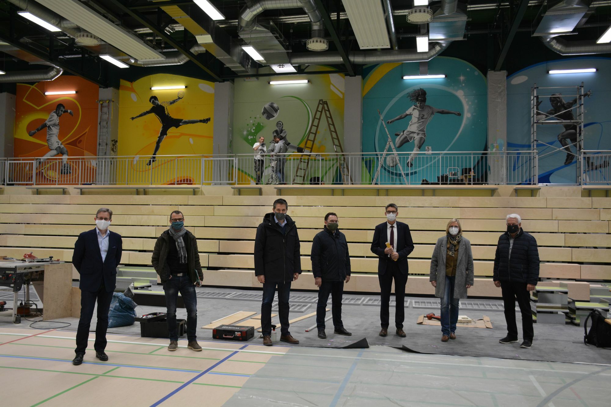 Ab Februar kommenden Jahres soll die Stefan-Andres-Sporthalle den Schulen wieder komplett für den Unterricht zur Verfügung stehen. Die Dreifeld-Halle, die zum Schulzentrum in Schweich gehört und sich wie das Gymnasium und die Realschule plus daher in Träger-schaft des Kreises befindet, wird seit Mitte 2019 von Grund auf saniert. Die Arbeiten liegen im Zeitplan. In der vergangenen Woche wurde im Rahmen eines Pressegespräches der Baufortschritt sowie die künstle-rische Innengestaltung der Halle und Umkleiden vorge-stellt.