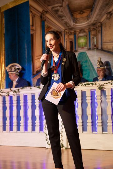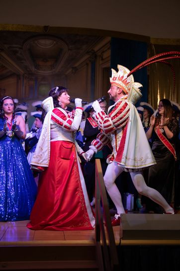 Das amtierende Prinzenpaar Prinz Mätty I. aus em Haasenställchen und Prinzessin Jenny I. vom Knusperhäusschen regieren dieses Jahr über das närrische Ehrang. Unter musikalischer Begleitung von den Trierer Hofmusikanten zog das Prinzenpaar samt Gefolge ein. Begleitet von den Garden, Vorstand und Elferrat begrüßten sie Gäste von nah und fern und das Trierer Stadtprinzenpaar Harald III. und Marion II. Der Königliche Kater "Max" (Haas) eroberte danach die Bühne. Der der jede Ecke in Erik kennt stand zum ersten mal in der Bütt und meisterte seine Sache mit Bravur. Mit viel Geschick und Kraft wurden die Fahnen beim Tanz der Fahnenschwenker geführt und gewirbelt. "Ihr habt schon ein Alter erreicht dann lernt man schwer, bei manchen von euch klappt es gar nicht mehr", so verkündetet Hexenprinzessin Marie (Hank) aus der Bütt und verlangte doch von allen Zauberlehrlingen in der Halle karnevalistische Treueschwüre ab. Absolute Ruhe herrschte im Saal als zu Klaviermusik 15 kleine Prinzessinnen die Bühne betraten. Mit dieser Ruhe war es allerdings schnell vorbei, als sich zu den Prinzessinnen fünf Frösche gesellten, die ihre Zauberkugel hatten. Wunderschön von der Kindergarde vertanzt, war es das Märchen vom Fröschkönig. Ein Klotz am Bein, so Julia Löw in ihrer Bütt, das sind die kleinen Geschwister. Man liebt sie, aber sie machen das Leben manchmal durchaus kompliziert. Die Nachwuchsgarde präsentierte dann ihren diesjährigen Marschtanz. Die Sitzungspräsidententinnen Gertrud Haas und Svenja Braun zeigten sich beide sehr stolz über den vielen Nachwuchs im Verein. Ein Jubiläum besonderer Art feierten Fien und Trin (Gertrud Eisenach und Mechthild Keul) die nach 11jähriger Bühnenabstinenz wieder dabei waren. Liebevoll sachlich tauschten sie Komplimente aus und plauderten aus den Nähkästchen ihrer angetrauten Mitesser. Ein echter Hingucker: Solomariechen Marie-Sophie Otto. Temperamentvoll und akrobatisch begeisterte sie mir ihrem Solotanz. Engelchen und Teufelchen und dazu ein 111 Jahre alter Wuppdus. Alexandra Zimmer und Gaby Löscher sorgten mit ihrer Bütt für glänzende Stimmung. "Forever Young" - eine besondere Tanzgruppe - machte deutlich, dass Karneval und Tanz keine Frage des Alters sind, sondern der Einstellung. Schwungvoll drehten sich hier Rumpelstilzchen, die böse Hexe, Cinderella, die Eiskönigin und viele andere Märchengestalten über die Bühne. Dr. Eisenbarth (Jürgen Haubrich) und seine Patientin Frau Döppenlappes (Maria Löw) hatten so manches medizinische Problem zu besprechen. Mit einem klassischen Marschtanz zeigte die große Garde der Gesellschaft ihr Können. So gut hatte es der Prinz (Kurt Thonet ) beim Adler (Gertrud Haas) leider nicht. Selbst einfache Übersetzungen wie "Viehdiebstahl" konnten konnte man ihm nicht entlocken. Herzbeben war das Motto des von der Jugendgarde vertanzten Märchen "Cinderella". Volker Feil erzählte als Hippe von den Nebenwirkungen von Hasch "das ist verreisen ohne sich von der Stelle zu bewegen" und bekam für seine Rede stehende Ovationen. Die Gruppe Kappeskääp putschte noch einmal so richtig die Stimmung in der Narrhalla. Dann rockte das Männerballett mit Dolldöppchi's Unchained die Bühne. Zum Finale hieß es dann: "Es war einmal im schönen Ehrang" mit dem Schautanz der Großen Garde.