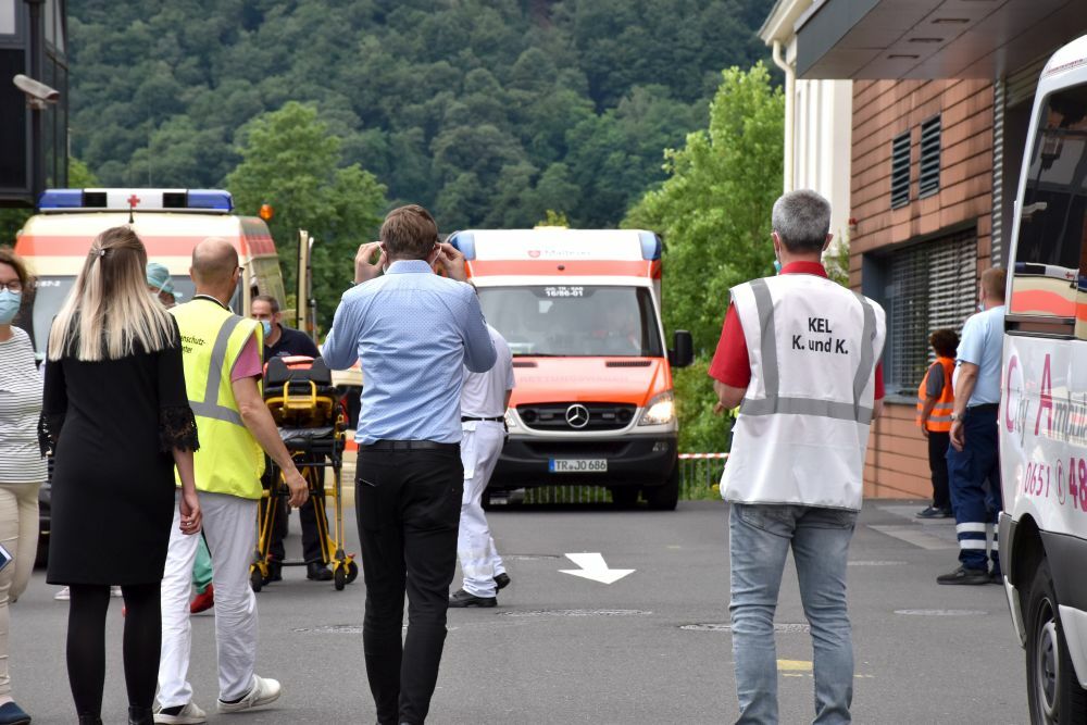 Das Klinikum Mutterhaus der Borromäerinnen hat den Katastrophenalarm ausgelöst. Das bedeutet, dass das komplette Klinikum Mutterhaus der Borromäerinnen Ehrang evakuiert wird. Seit dem späten Vormittag werden Patientinnen und Patienten mit Fahrzeugen des klinikeigenen Interhospitaltransfers, Rettungsfahrzeugen und auch Hubschraubern in das Klinikum Mutterhaus Mitte und das Klinikum Mutterhaus Nord transportiert. Um 12:27 Uhr ist der erste Hubschrauber im Klinikum Mitte gelandet. Auch das Krankenhaus der Barmherzigen Brüder Trier nimmt Patienten auf. Weitere Patienten können entlassen werden. Um 13:15 Uhr ist die Evakuierung abgeschlossen. Im Klinikum Mutterhaus Ehrang steht Wasser, betroffen sind vor allem die Cafeteria, die Physiotherapie und die im Haus befindliche externe radiologische Praxis. Ehrang ist von fehlendem Strom betroffen, auch das Klinikum. Die Aufnahme der Patientinnen und Patienten in Mitte und Nord ist abgeschlossen. Notfälle können aktuell nicht mehr aufgenommen werden. Dr. med. Christian Sprenger, der seit dem Donnerstagmorgen im Klinikum Mutterhaus Ehrang vor Ort war, ist froh, dass die Evakuierung so reibungslos funktioniert hat: „Mein großes Dankeschön geht an alle Beteiligten vor Ort von der Stadt Trier und dem Landkreis Trier-Saarburg. Die Kräfte der Rettungsdienste, der Feuerwehr, der Polizei haben hervorragend zusammengearbeitet. Unsere Mitarbeiterinnen und Mitarbeiter waren bis zum Schluss hier vor Ort und haben sich vorbildlich um die Betreuung unserer Patientinnen und Patienten gekümmert, die in den Trierer Kliniken gut versorgt sind. Mein herzlicher Dank an dieser Stelle auch an das Krankenhaus der Barmherzigen Brüder Trier.“ Angehörige können über diese Nummern in Kontakt mit dem Klinikum kommen: · Infos zu von stationären Patientinnen und Patienten aus Ehrang: Tel. 0651 947-82867 Seelsorge: Tel. 0651 947-84493