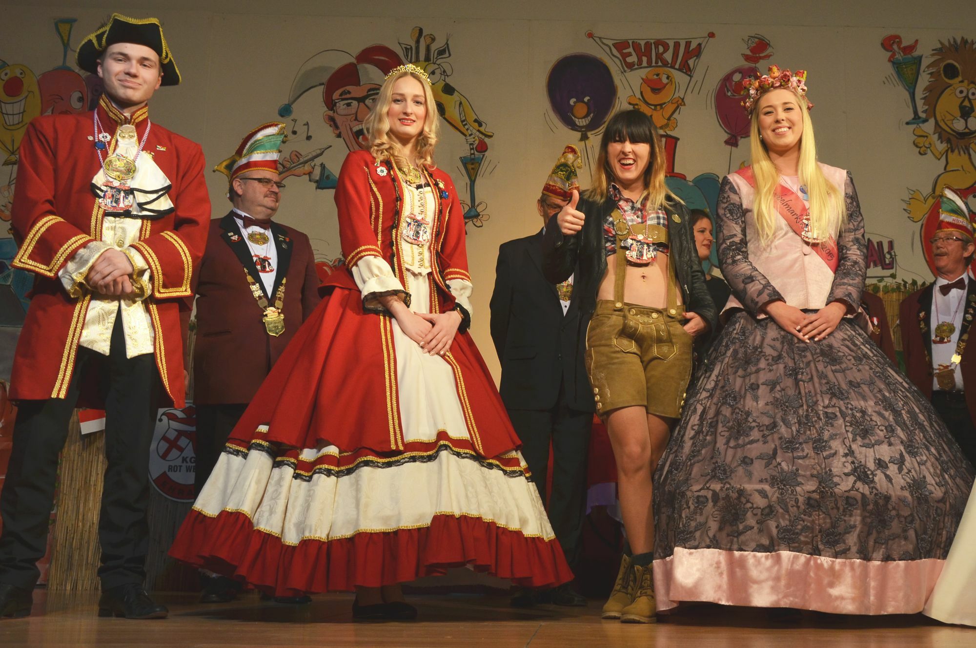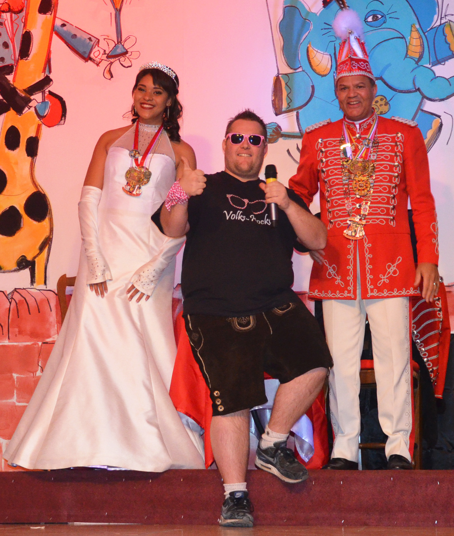 Geboten wurde den Gästen neben ausgelassener Stimmung auch ein buntes und abwechslungsreiches Programm. So kam Alvis und Oliver von der Müllabfuhr in ihrem alljährlichen Rückblick auf Ehrang der Gedanke, die große Karl-Marx-Statue doch mitten auf den neuen Kreisel zu platzieren. So stünde einem deutsch-chinesischen Touristenzentrum in Ehrang nichts mehr im Wege. In der Sprache fanden sie schon Parallelen wie "Hei dei wei", wenn etwas Schweres zu verschieben sei. Die Movingstars überraschten das Publikum mit akrobatischen Künsten und wagemutigen Einlagen. Die Kindergarde zeigte mit Verkleidungskünsten und artistischer Gewandtheit, dass sie schon jetzt das Talent besitzt, bald in der Jugend- und Großen Garde auftreten zu können. Das Männerballett wiederum lüftete sein Geheimnis hinter der anfangs lammfrommen Fassade. Mit nahezu grazilen Bewegungen verwandelten sich die hochgeschlossenen Nonnen in gefeierte Diven. Kein Auge trocken blieb bei der Büttenrede von Roland (Grundheber). Der schrieb seine Rede erst spontan einige Stunden vor dem Auftritt. Als Krokodil verkleidet, berichtete er von seinen vorherigen teils tolpatschigen Erlebnissen. Natürlich gab es bei der Sitzung auch hohen Besuch: Das aktuelle Prinzenpaar, die ehemalige Prinzessin nebst Zwiebelmarkt-Königin aus Triers Partnerstadt Weimar stattete dem KG Rot-Weiß Ehrang einen Besuch ab. Auch Prinz Jan und Prinzessin Sarah vom ICV Issel ließen es sich auch nicht nehmen, persönlich ein dreifaches "Ehrik Helau!" zum Gruß zu hinterlass
