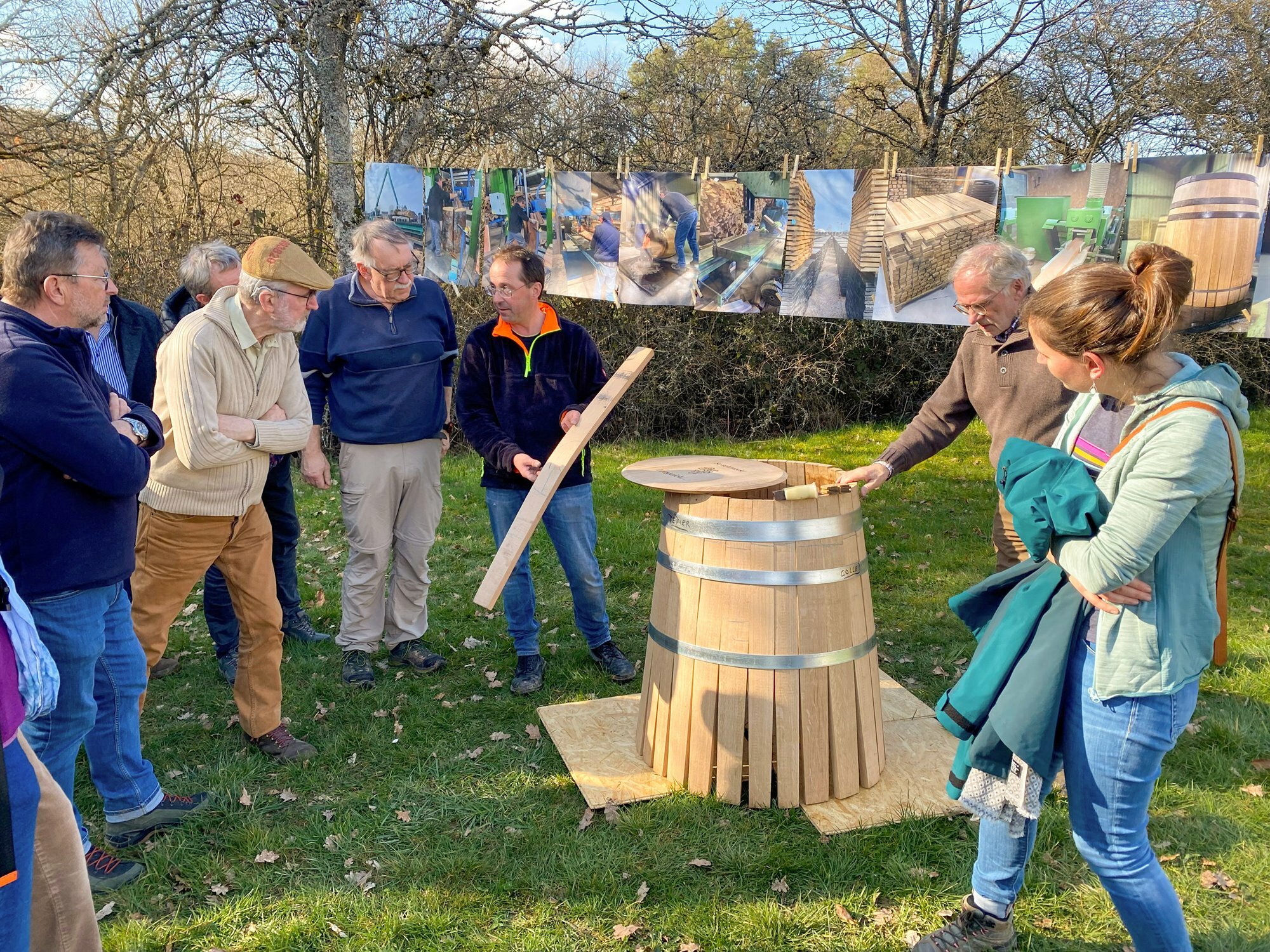 Am Ende der Wanderung steht das Produkt Barriquefass im Vordergrund, das auch von vielen Winzern in Longuich genutzt wird. Frank Deschamps erläutert Schritt für Schritt den Herstellungsvorgang und stellt im Dialog mit den anwesenden Winzern die Vorteile eines solchen Fasses in Bezug auf die Weinherstellung heraus. Dass der Theorie schließlich in Form einer Weinverkostung auch die Praxis folgt, rundet eine sehr gelungene Veranstaltung ab.
