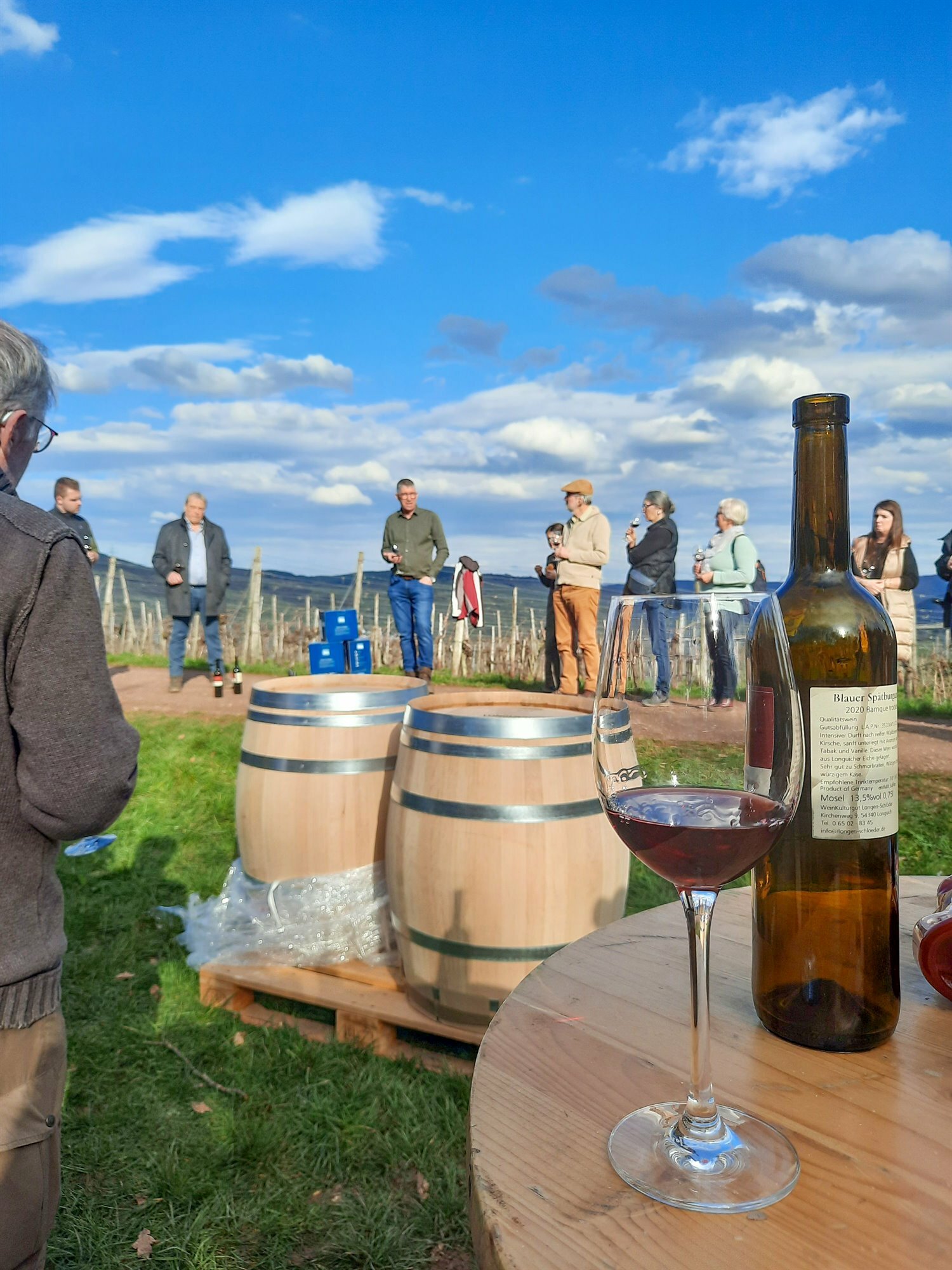 Schon seit vielen Jahren ist Frank Deschamps in der gesamten Region unterwegs, seit 2017 auch regelmäßig im Longuicher Wald. Er ist Einkäufer für einen Betrieb in Blois. Dort werden hochwertige Barriquefässer hergestellt. Das sind Eichenfässer, die vor allem zum Ausbau von Wein, aber auch für die Herstellung von Whisky und Bier genutzt werden. Für die Longuicher Winzer aber haben diese Fässer eine besondere Bedeutung, stammt das Holz dafür doch aus ihrem Wald.