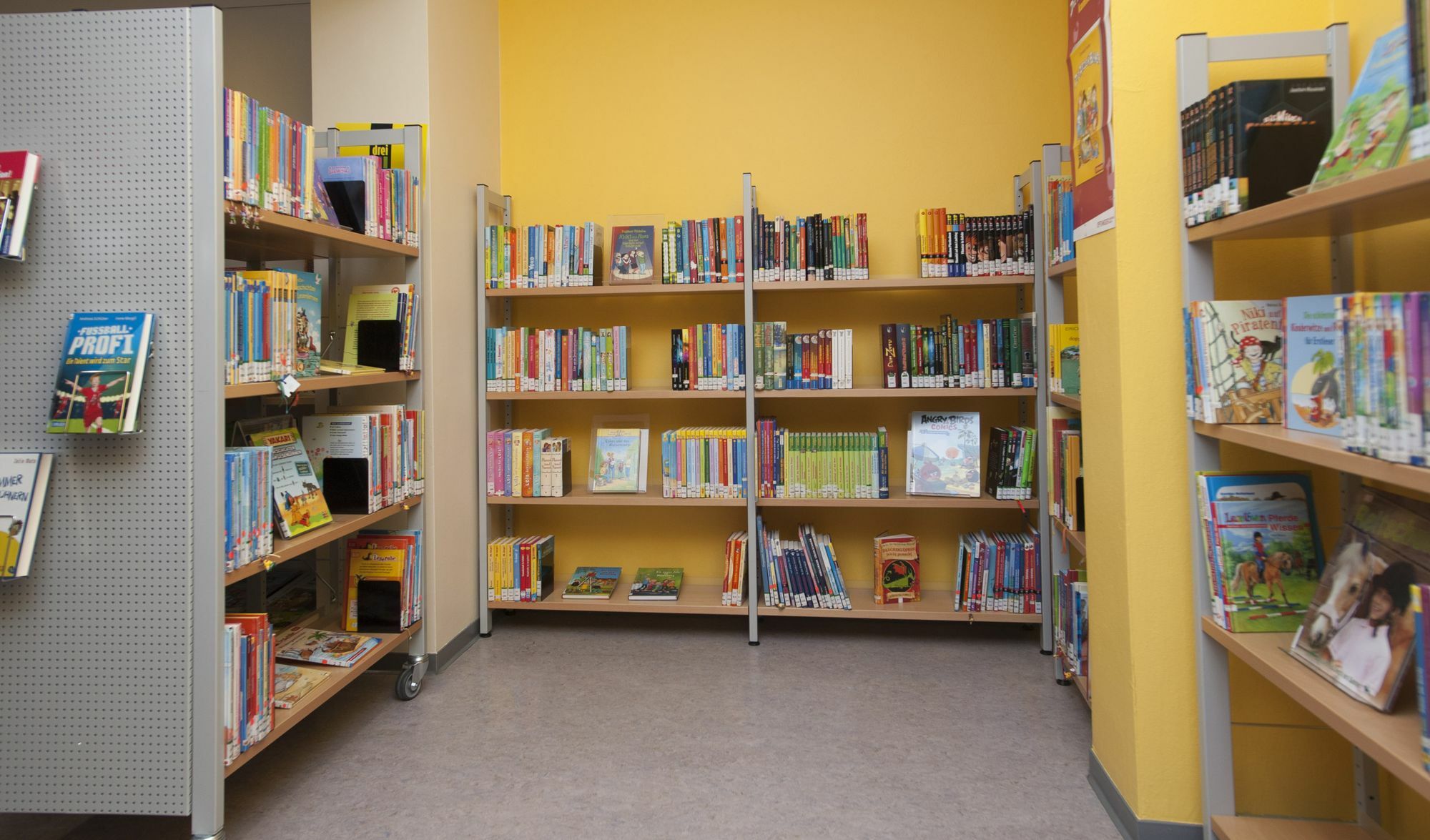Auf 75 Quadratmetern gibt es derzeit 3800 Medien. Ein Großteil des Angebotes richtet sich an Kinder, Jugendliche und Familien aber es gibt auch Literatur für Erwachsene und sogar Zeitschriften und Hörbücher.