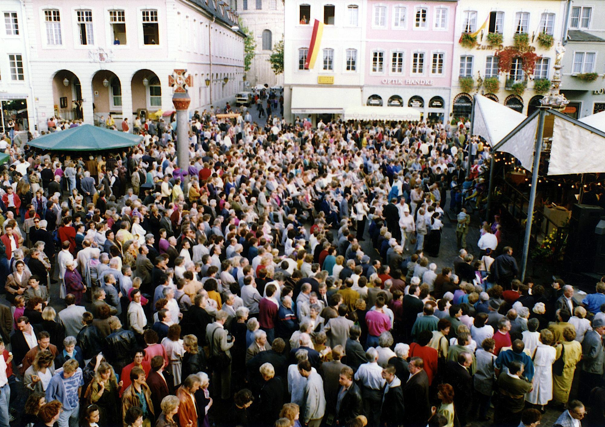 Als 1989 die Mauer fiel und ein Jahr später die Wiedervereinigung nur noch eine Frage der Zeit war, wurde diskutiert, ob sich das wiedervereinigte Deutschland eine neue Verfassung geben (Artikel 146 Grundgesetz) oder die DDR dem Grundgesetz beitreten sollte (Artikel 23 Grundgesetz). Für den Artikel 146 sprach die Mitwirkung des gesamten Volkes in Form eines Volksentscheids. Der Artikel 23 hingegen begünstigte eine zeitnahe Einigung. Zu einem umfassenden Diskurs kam es jedoch nicht mehr, da viele DDR-Bürger die Entscheidung vorwegnahmen, indem sie »mit den Füßen abstimmten« und die DDR verließen. Die zu erwartenden ökonomischen Nachteile für die DDR sowie eindeutige Meinungsumfagen in Ost und West führten letztendlich zum Einigungsvertrag, in dem festgelegt wurde, dass das Grundgesetz mit Vertragsunterzeichnung in den nunmehr ehemaligen DDR-Ländern in Kraft tritt.