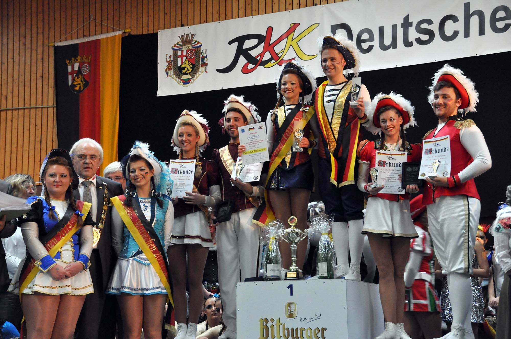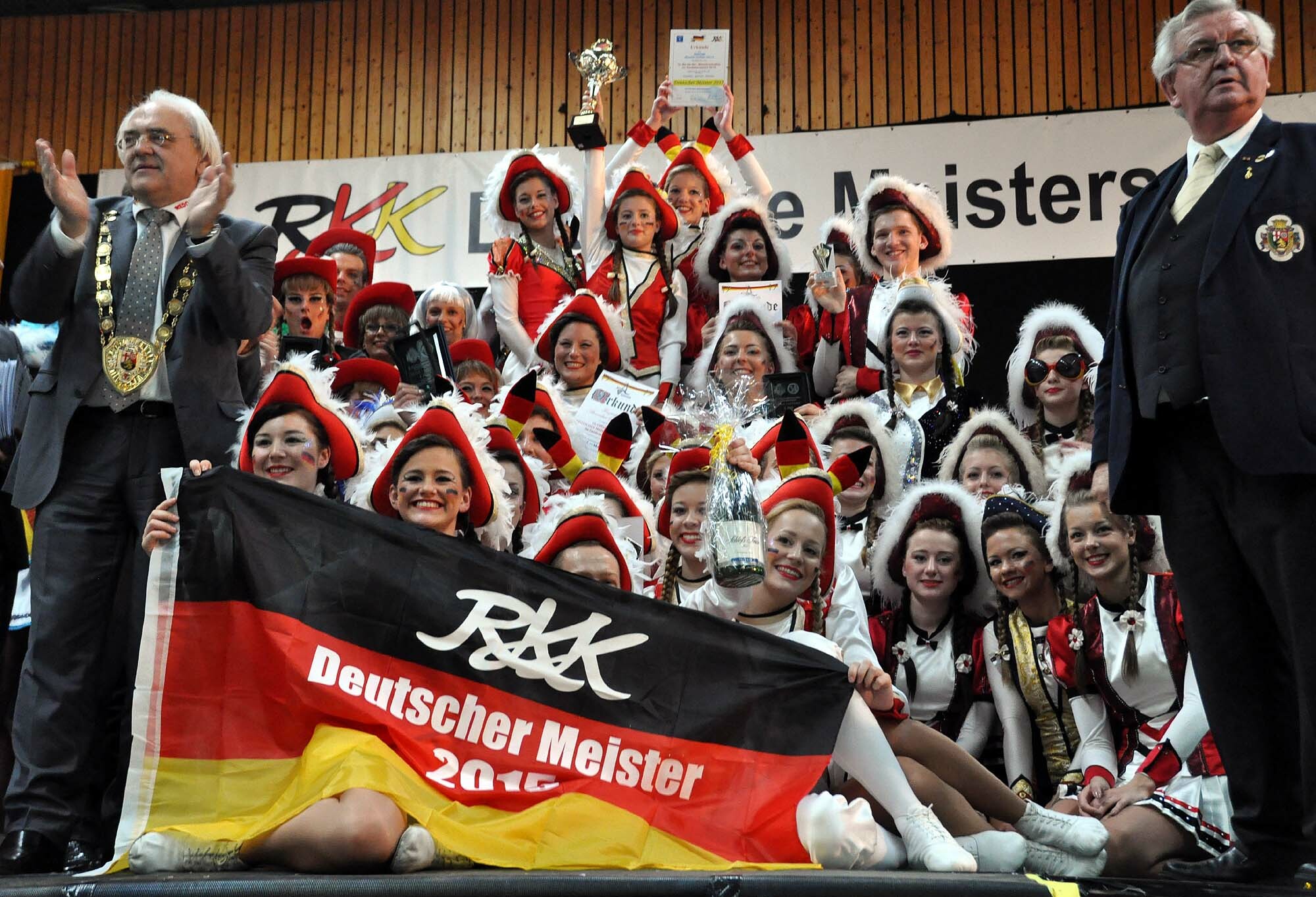 Die Aktiven präsentierten sich zum Abschluss einer langen Turniersaison mit einem Dutzend Qualifikationsturnieren und vier Landesmeisterschaften in bestechender Form und boten Gardetanzsport auf höchstem Niveau. Für ausgezeichnete und ausgelassene Stimmung mit Fanfaren und Trommeln sorgten die mitgereisten Fans. Einmal mehr waren die Tanzmariechen das Maß aller Dinge, sie ertanzten sich in allen drei Altersklassen die Tageshöchstwertungen und Adina Leinen aus dem saarländischen Gisingen brachte bei den Junioren gar das Kunststück eines Grand Slam fertig. Neben dem deutschen Meistertitel siegte sie auch bei den vorangegangenen vier Landesmeisterschaften. Die äußerst selten vergebene Traumnote 10,0 gab es am Sonntag bei den Senioren für Tanzmariechen Jennifer Jager (TSC Gisingen).