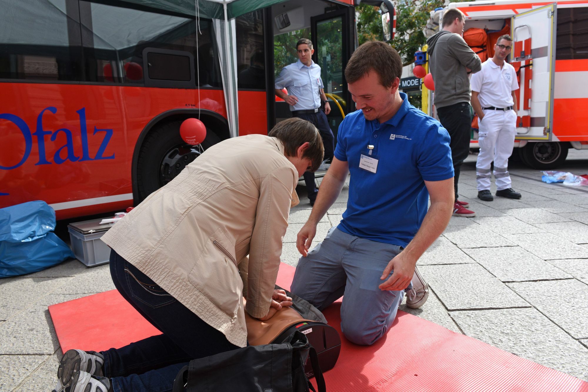 Prüfen. Rufen. Drücken! Aktionsveranstaltung rund um Wiederbelebung auf dem Kornmarkt und Trier.