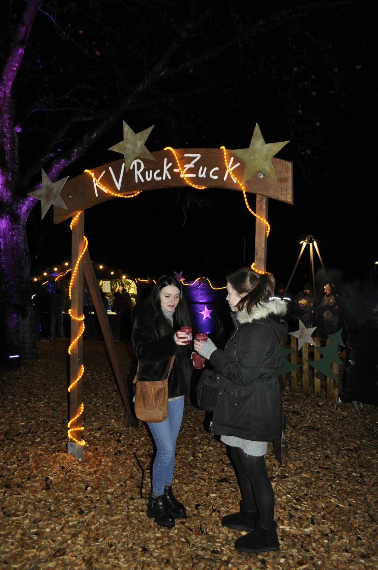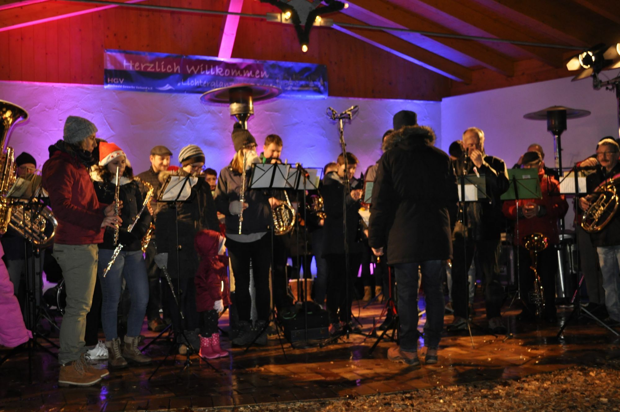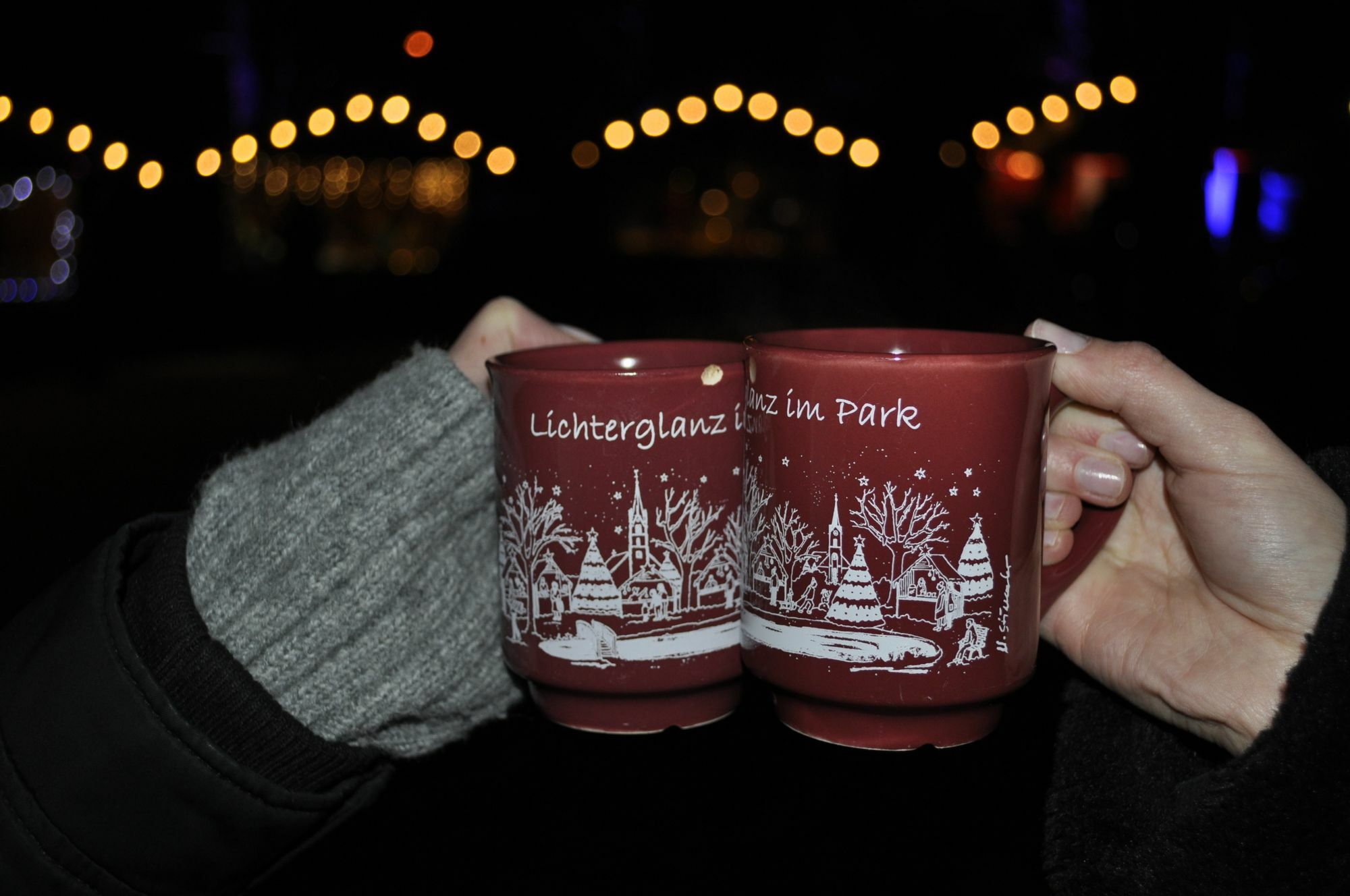 Das ganze Wochenende wurde begleitet von Regen und Windböen. Dabei war im Stadtpark wieder einmal alles für einen Weihnachtsmarkt vor stimmungsvoller Kulisse angerichtet. Ein gemütliches Hüttendorf mit 30 stimmungsvoll beleuchteten Holzhütten aufgebaut. An den Ständen gab es für die Besucher reichlich Angebote, um ein passendes Geschenk zu finden oder Hunger und Durst zu stillen. Die Bäume des Parks leuchten in vielen Farben. Lichterketten, mehrere Feuerstellen und die schön dekorierten Stände sorgen für eine anheimelnde Atmosphäre.