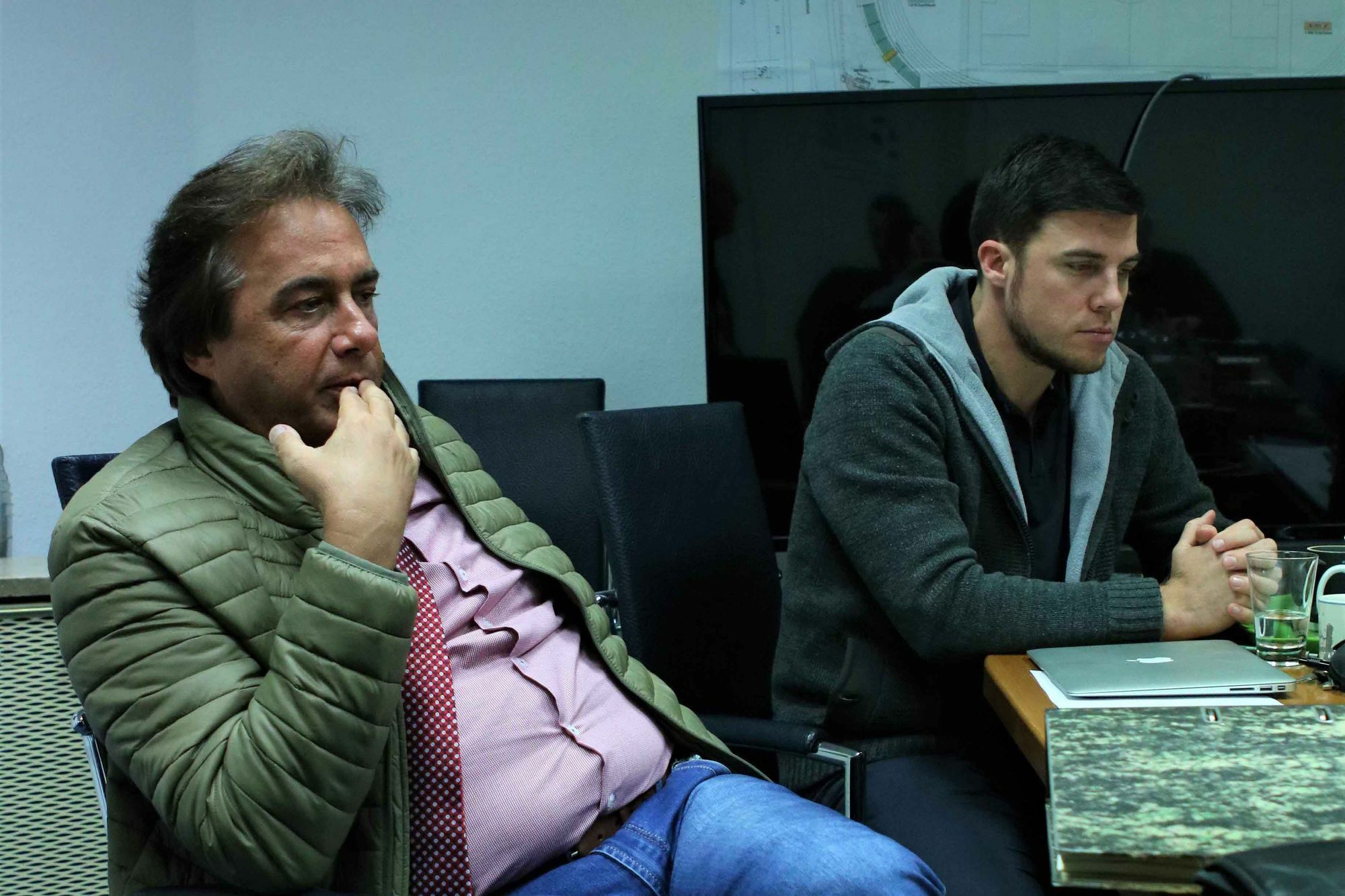 Finanzvorstand Dieter Friedrich (links) und Sportvorstand Torge Hollmann (rechts) informieren über die zukünftige Zusammenarbeit mit Fans und Mitgliedern. Foto: Krist