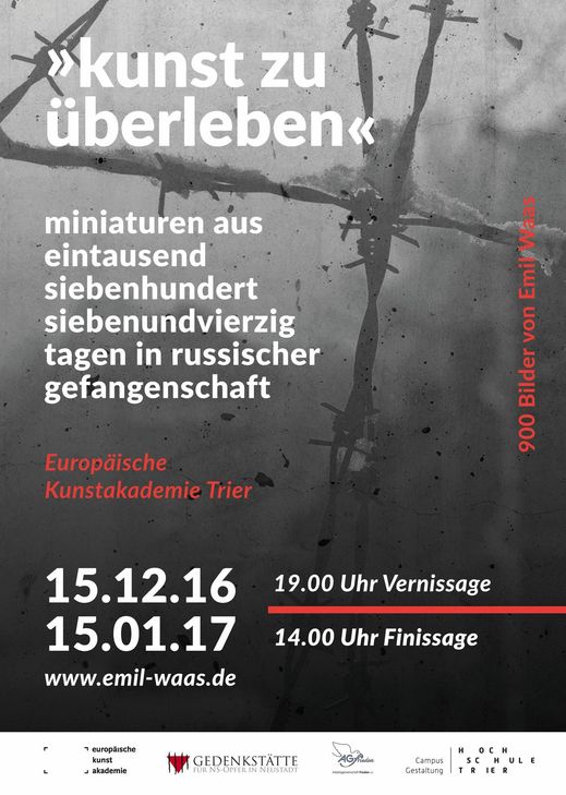 Emil Waas war ab 1939 meist an der Ostfront und ab 1943 als Soldat in Russland eingesetzt. Kurz vor Kriegsende - im Frühjahr 1945 – kam er in russische Kriegsgefangenschaft. Fast fünf Jahre verbrachte er in verschiedenen Lagern. In diesem Zeitraum malte er über 900 Bilder im Miniaturformat, die unter anderem von Mitgefangenen bei ihrer Entlassung in Schuhen, Zigaretten und Streichholzschachteln aus den Lagern herausgeschmuggelt wurden. So hinterlässt er die "größte Kriegsgefangenenkunstsammlung der Welt und der Geschichte der Menschheit" (Britisches Kriegsmuseum, London).