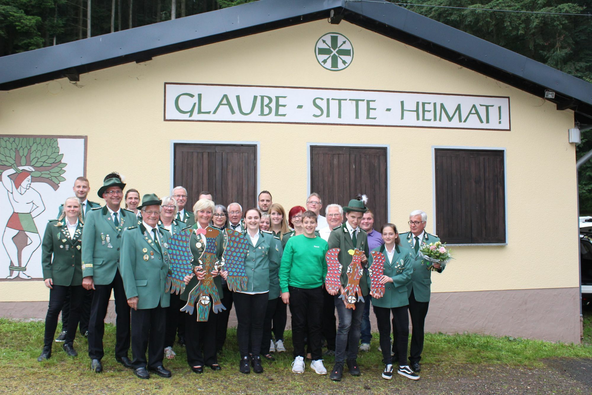 Nun lag die volle Konzentration der Schützen und Zuschauer auf dem Schießen um den Königstitel. Monika Schmitt schoss mit dem 110. Schuss den Vogel ab. Die Krönung des Schützenkönigspaares Monika und Winfried Schmitt findet am 4. August in der Pfarrkirche in Mehring statt.