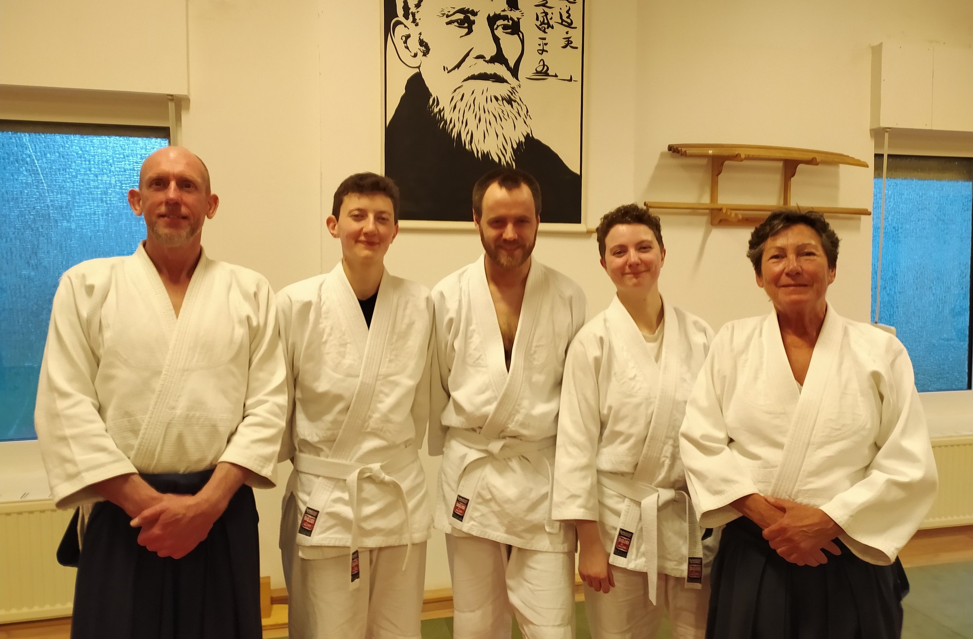 Hortensia Notari steigt zum 1. Kyu auf. Kathrin Schröder und Felix Lehn haben die Prüfung zum 4. Kyu bestanden.