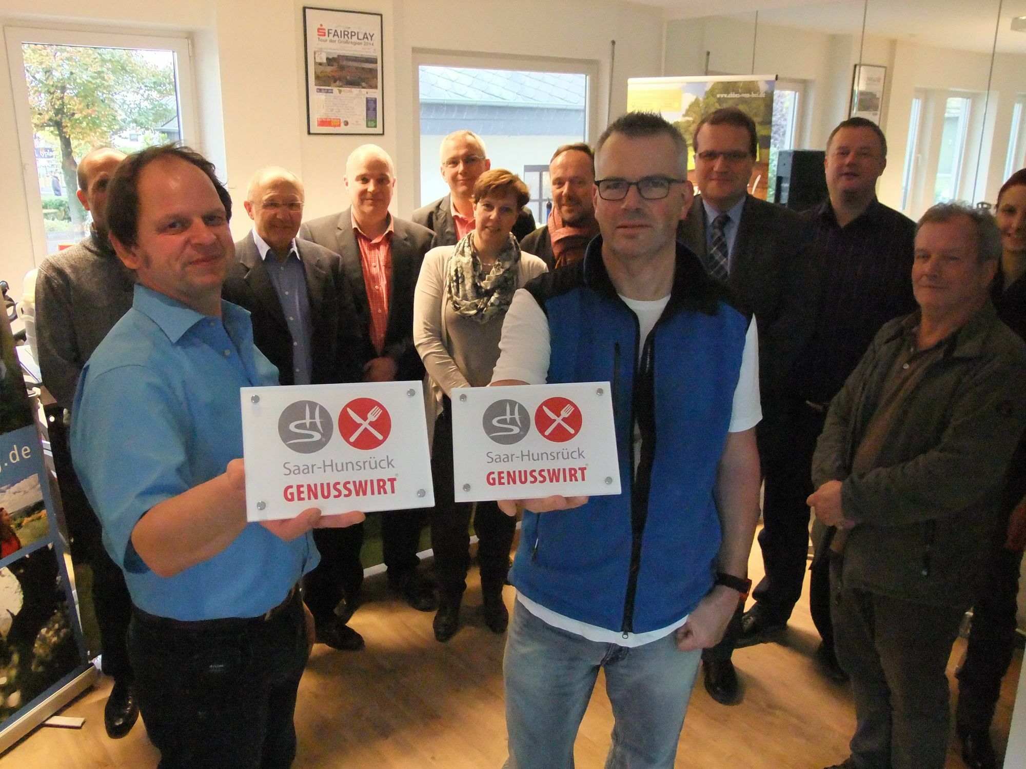 "Es freut mich sehr, dass ausgerechnet zwei Gastronomen aus dem Raum Kell die ersten 'Genusswirte' in der Region sind", sagte der Keller Verbandsgemeinde-Bürgermeister Martin Alten. Er bezeichnete die Auszeichnung als "eine schöne Weiterentwicklung zum erfolgreichen SHS-Projekt". Wie es zu der neuen Auszeichnung kam, erklärte Achim Laub, Chef des Saar-Hunsrück-Steig-Projektbüros in Losheim: "Wir bekommen von Wanderern nach deren Touren oft die Rückmeldung, dass sie die schlechten Öffnungszeiten der Gasthäuser beklagen und sie dort häufig auch regionale Produkte vermissen. Um das zu ändern, habe sich die Tourismusorganisationen grenzübergreifend zur Einführung eines neuen Qualitätslabels entschlossen. Diese Auszeichnung ist der Anfang einer neuen Marke, die sich auch über die gesamte Saar-Hunsrück-Kulisse erstrecken wird. Die frisch gekürten Genusswirte Michael Krämer vom Keller Hotel-Restaurant "Zur Post" und Christoph Maßem vom gleichnamigen Gasthaus in Schillingen dürfen ab sofort mit dem neuen Schild "Genusswirt" an ihrer Eingangstür werben. Weitere Auszeichnungen werden in den Kreisen Merzig-Wadern, Bernkastel-Wittlich, Rhein-Hunsrück und Birkenfeld folgen. Und wie wird man Genusswirt? Es gibt zwei Grundvoraussetzungen, die man erfüllen muss, um überhaupt Genusswirt werden zu können. Einmal muss der Betrieb nach den Kriterien des Deutschen Hotel- und Gaststättenverbands (Dehoga) mindestens mit einem Stern zertifiziert sein. Zum anderen muss er das Siegel „Qualitätsgastgeber Wanderbares Deutschland“ tragen. Erst dann besteht die Möglichkeit, Genusswirt zu werden. Rund 130 Gastronomen im Umfeld des Saar-Hunsrück-Steigs erfüllen diese Kriterien. Eine weitere Voraussetzung für die Bewerber um die neue Auszeichnung ist. dass der „Genusswirt“ Mitglied einer Initiative sein, die regionale Produkte vermarktet und anbietet. Sowohl das Gasthaus Maßen als auch das Hotel-Restauarant „Zur Post“ sind von Anfang an bei der seit drei Jahren bestehenden Initiative „Ebbes von Hei“ dabei, die das Gebiet vom Nordsaarland bis nach Morbach abdeckt. FIS/Foto: FISCHER