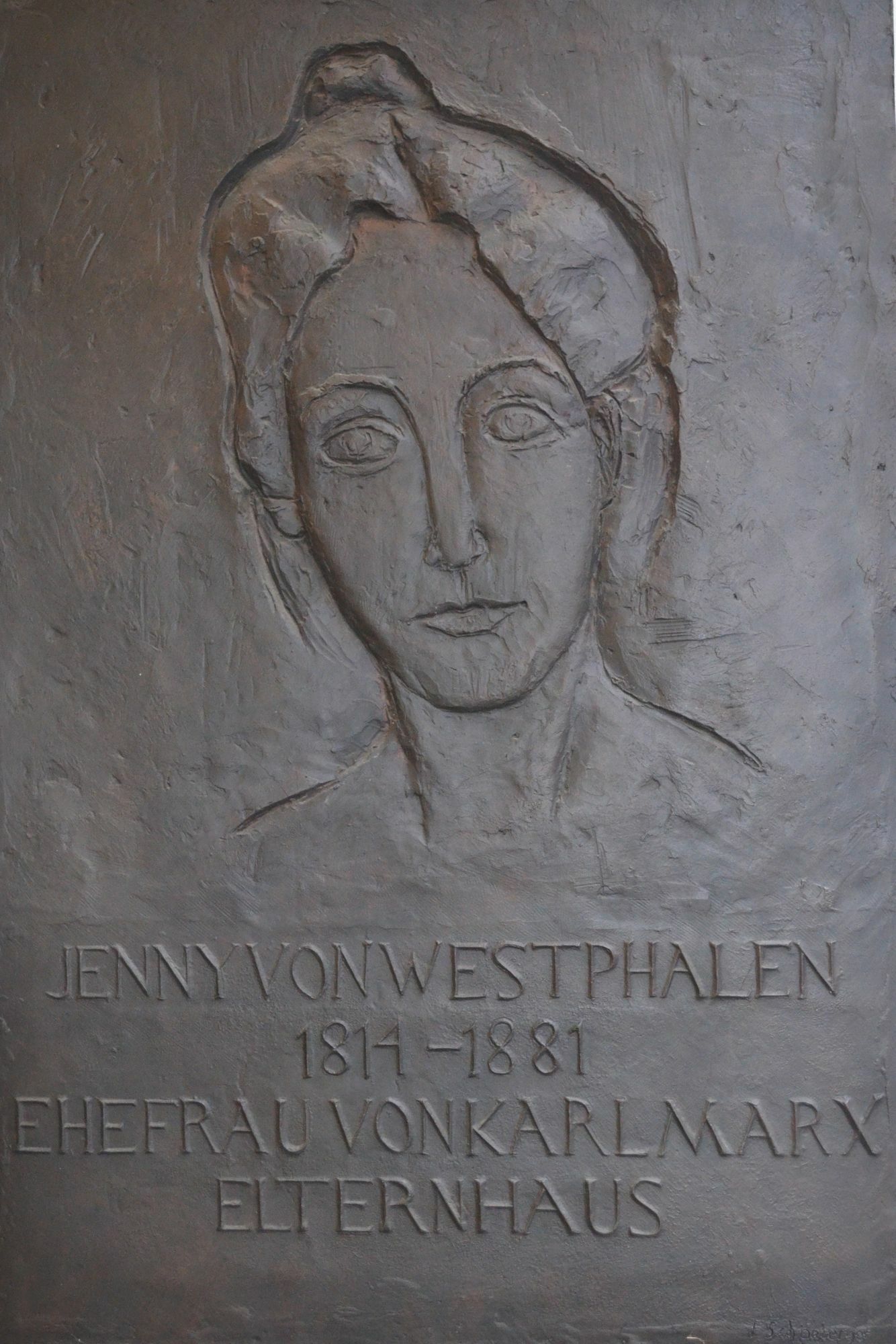 Johanna Bertha Julie Jenny von Westphalen wurde am 12. Februar 1814 in Salzwedel geboren. Den Rufnamen Jenny erhielt sie von ihrer schottischen Großmutter. Ihr Vater war der königlich preußische Beamte Ludwig von Westphalen. 1816 wurde er nach Trier versetzt. Die Familie lebte im Haus Nr. 389 (heute Neustraße 83). In der "Literarischen Kasinogesellschaft" lernte Jennys Vater den Justizrat Heinrich Marx kennen, den Vater von Karl. Die Familien waren bald befreundet. Jennys Bruder Edgar war ein Klassenkamerad von Karl. Jenny und Karl lernten sich so kennen und vielleicht auch lieben.