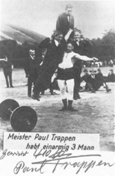 Das hinderte ihn aber nicht daran, regelmäßig die bei den Olympischen Spielen offiziell erreichten Leistungen zu übertrumpfen. Als Ringer und Gewichtheber hatte sich Trappen schon früher einen Namen gemacht. 1913 konnte er sich den Titel »Deutscher Meister im Schwergewichtheben« sichern. 1924 folgte der Europameistertitel. Seinen Ruf als stärkster Mann der Welt konnte Paul Trappen länger behaupten als alle anderen Athleten vor und nach ihm.