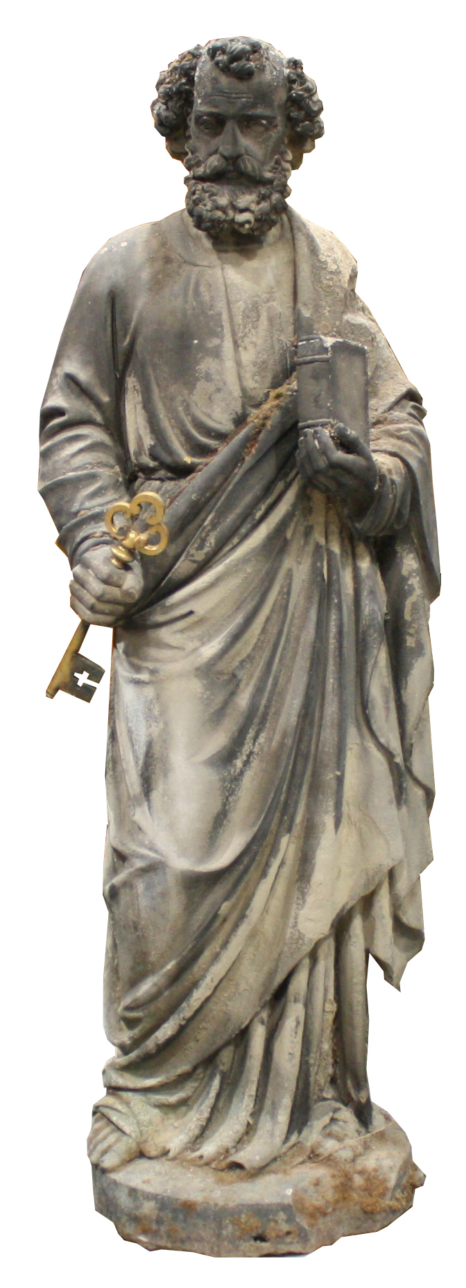 Mehr als 70 Jahre war eine Petrus-Skulptur des alten Rathauses am Kornmarkt verschollen – jetzt ist die Figur überraschend wieder aufgetaucht. Die Nachkommen eines Trierer Bildhauers in Frankreich haben die Skulptur der Stadt übergeben.
