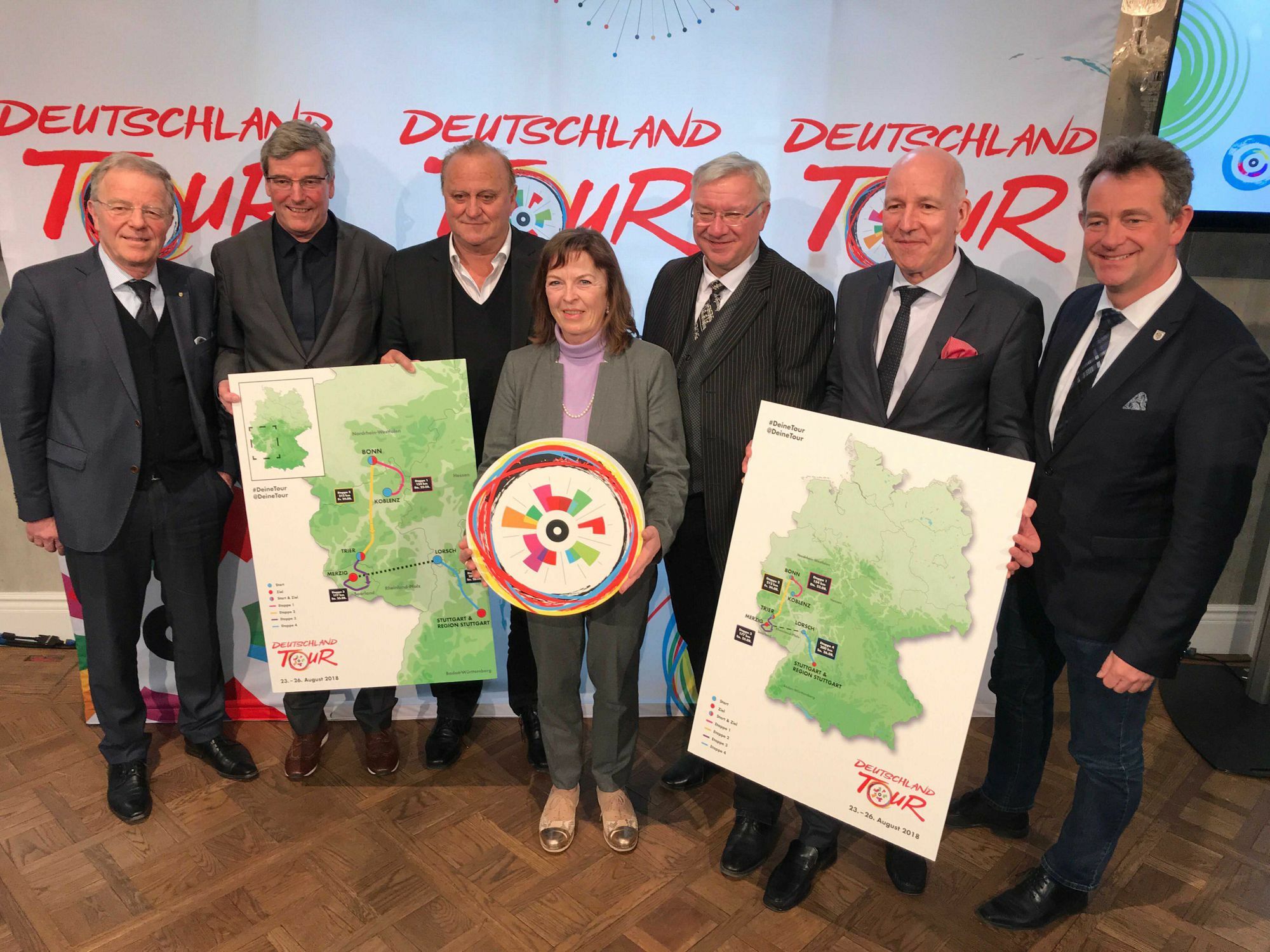 Für Oberbürgermeister Wolfram Leibe ist die Deutschland Tour neben dem Karl-Marx-Jahr der zweite große Höhepunkt 2018. Leibe: "Wir möchten möglichst vielen Menschen von außerhalb zeigen, was die älteste Stadt Deutschlands zu bieten hat." Bürgermeisterin Elvira Garbes, die Leibe bei der Tour-Präsentation in Frankfurt vertrat, sagte: "An beiden Tagen wird die Tour an nahezu allen wichtigen Bau- und Kulturdenkmälern der Stadt vorbeikommen und damit Fernsehzuschauern in Deutschland und vielen weiteren Ländern präsentieren, wie attraktiv die Stadt ist und wie reizvoll sie in die malerische Mosellandschaft eingebettet ist." Garbes verwies auf die Erfahrung der Stadt mit ähnlichen Veranstaltungen: "Dass wir sportliche Großveranstaltungen wie die Deutschland-Tour stemmen können und dass die Triererinnen und Trierer sich für große Sportevents begeistern, haben wir bereits im vergangenen Jahr mit der erfolgreichen Austragung der Special-Olympics-Landesspiele und der Handball-Frauen-WM bewiesen."