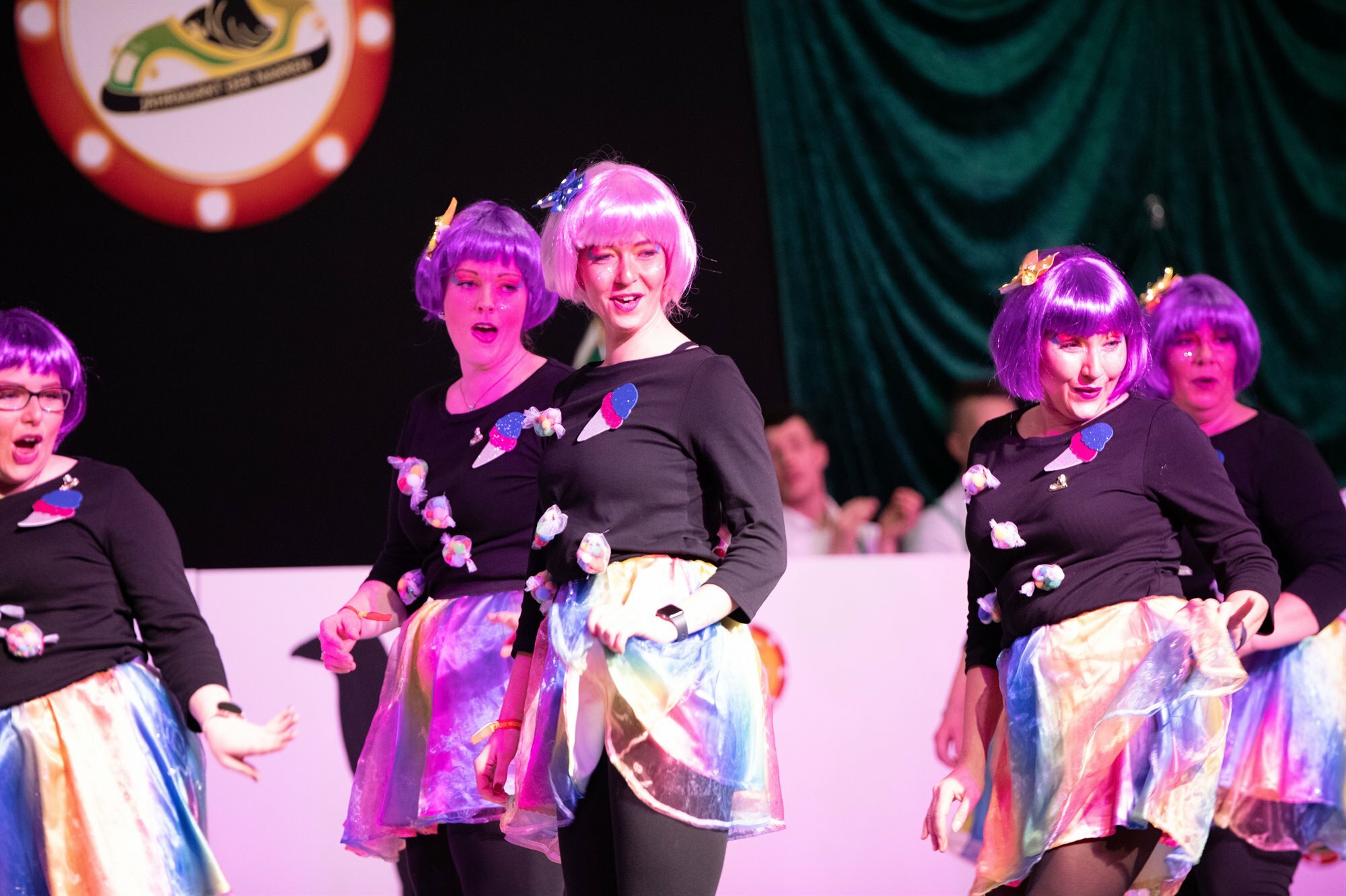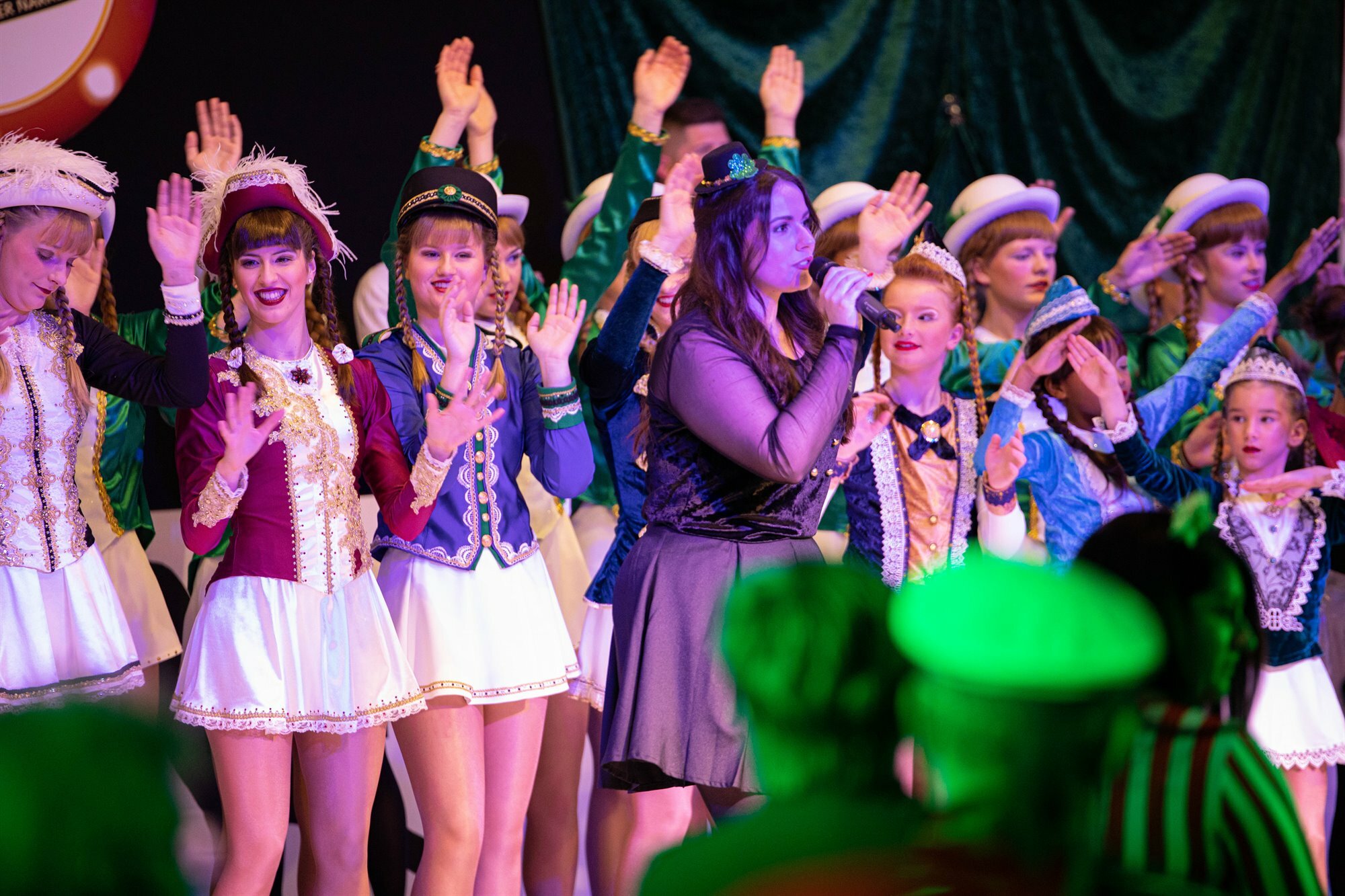 Weiter ging es mit 32 jungen Damen der Kooben-Minis, die mit ihrem Tanz Kettenkarussell, Autoscooter und weiteren Attraktionen eines Jahrmarktes tänzerisch zum Leben erweckten. Sportlich wurde es nun für die Gäste im Saal, die sich in einer Polonaise, durch das Druckwerk auf die Band "De Schouuten" körperlich vorbereiten konnten. Es konnte unbedenklich getanzt, gesprungen und lautstark mitgesungen werden.