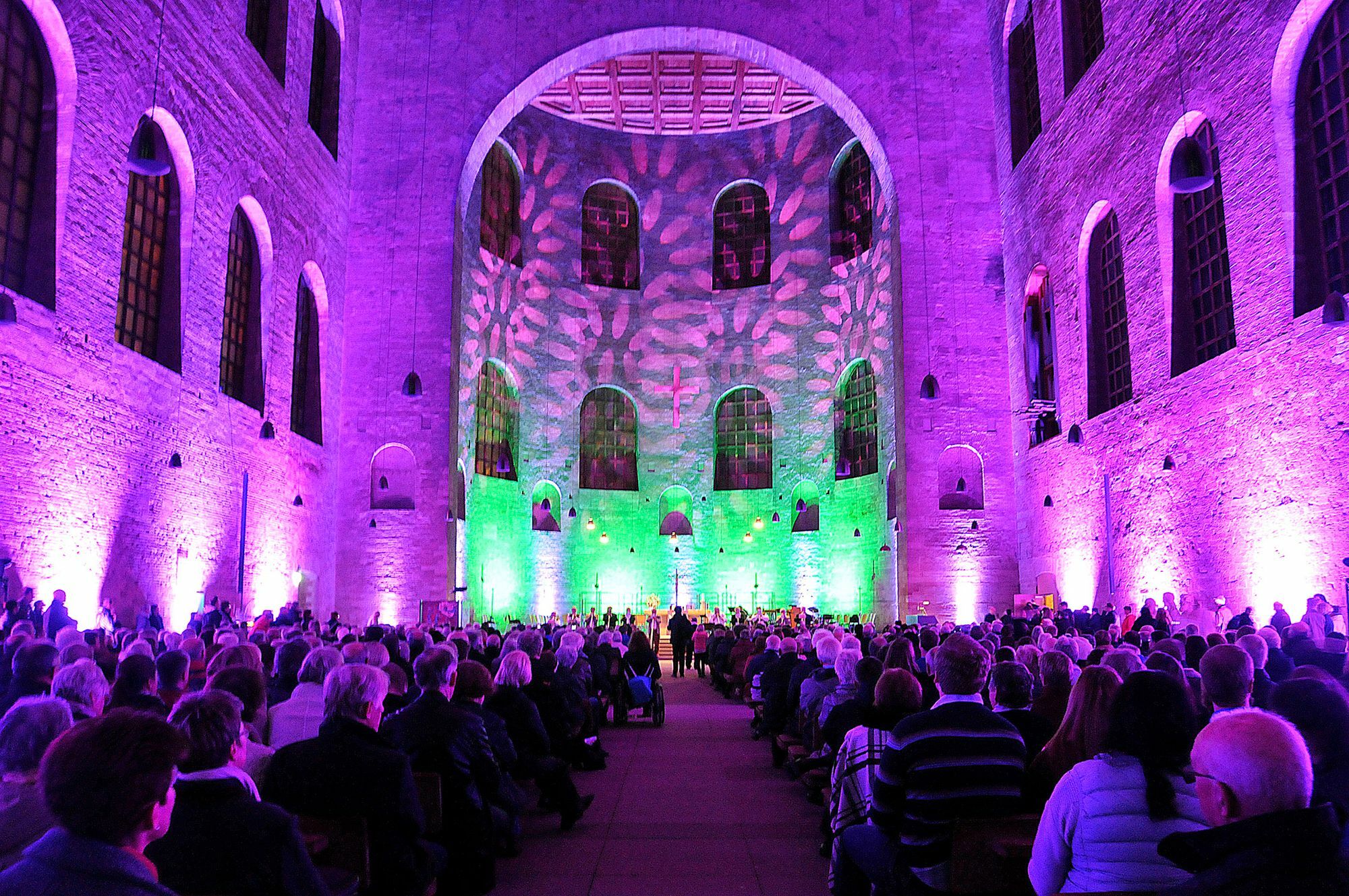 Dieser Botschaft gaben die Trierer in vielfältiger Weise in der in wechselndem Licht erstrahlenden Basilika ein Gesicht: Sei es in Form von Musik oder in Form von Tanz. Aber nicht zuletzt auch die persönlichen Nachtgedanken von Bürgermeisterin Angelika Birk, Helmut Leiendecker, Klaus Michael Nix, Vikarin Vera Mantowsky sowie Stadtdechant Ralf Schmitz rundeten das Fest ab und ließen deutlich werden: Vergnügt, erlöst, befreit – das steht für einen "fröhlichen Glauben, der das Lachen nicht verlernt hat und mit einem Augenzwinkern von Gott erzählt", fasste es Ralf Schmitz in seinen Nachtgedanken zusammen und setzte einen weiteren ökumenischen Akzent: "Ich bin dabei – als Katholik, protestantisch wie Hanns Dieter Hüsch, unterwegs zu 500 Jahren Reformation – hier in Trier, mit den Menschen und zum Wohle der Stadt."
