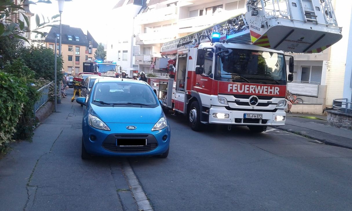 Da die Berufsfeuerwehr auf dem Rückweg von einem Einsatz in Olewig war, war sie sehr rasch mit der Drehleiter vor Ort. Die ältere Frau stand zu diesem Zeitpunkt um Hilfe rufend auf dem zur Straße hin gerichteten Balkon ihrer Wohnung im ersten Stock des Mehrfamilienhauses. Aus der Wohnung drang starker Rauch. Die Frau wurde mit der Drehleiter vom Balkon gerettet und mit Rauch- und Brandverletzungen ins Krankenhaus gebracht. Der Brand in der Wohnung war innerhalb weniger Minuten gelöscht. Andere Bewohner des Hauses waren nicht betroffen. Zur Brandursache können noch keine Angaben gemacht werden. Im Einsatz waren 20 Feuerwehr- und Rettungskräfte der Berufsfeuerwehr sowie 13 Wehrleute des Freiwilligen Löschzugs Olewig. RED/PA, Fotos: Agentur Siko