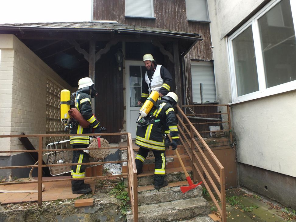 Die angenommene Situation: Es ist 14.48 Uhr, als in Schillingen die Sirenen heulen. Im Ortskern ist im Keller eines Mehrfamilienhauses ein Feuer ausgebrochen. Aus bislang ungeklärten Gründen waren im Keller mehrere Liter Heizöl ausgelaufen. Im Heizungsraum hatte es sich entzündet. Binnen weniger Sekunden steht das komplette Gebäude unter dichtem Rauch, man sieht nichts mehr. Mehrere Anrufe gehen bei der Leitstelle Trier ein. An einem Fenster im Obergeschoss ruft eine Person um Hilfe. Sie ist im Zimmer umgeben vom Rauch und eingeschlossen. Zum Zeitpunkt des Brandausbruchs sind auf dem Flachdach im hinteren Teil des Hauses zwei Dachdecker mit Arbeiten beschäftigt. Auch diese können das Haus nicht mehr verlassen.